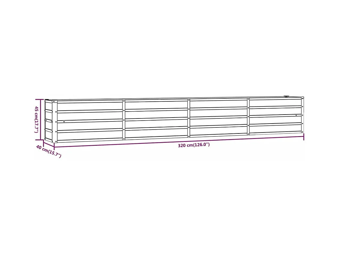 Lit surélevé de jardin rouillé 320x40x45 cm acier corten