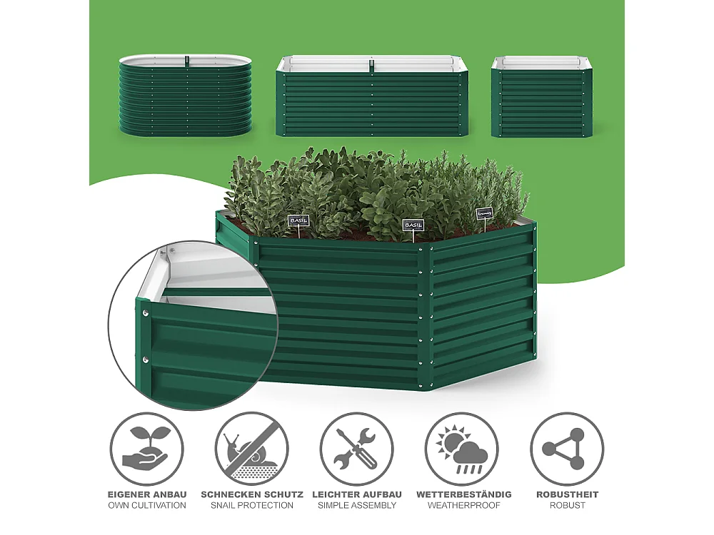 Lit surélevé de jardin Acier galvanisé 400x80x77 cm Vert
