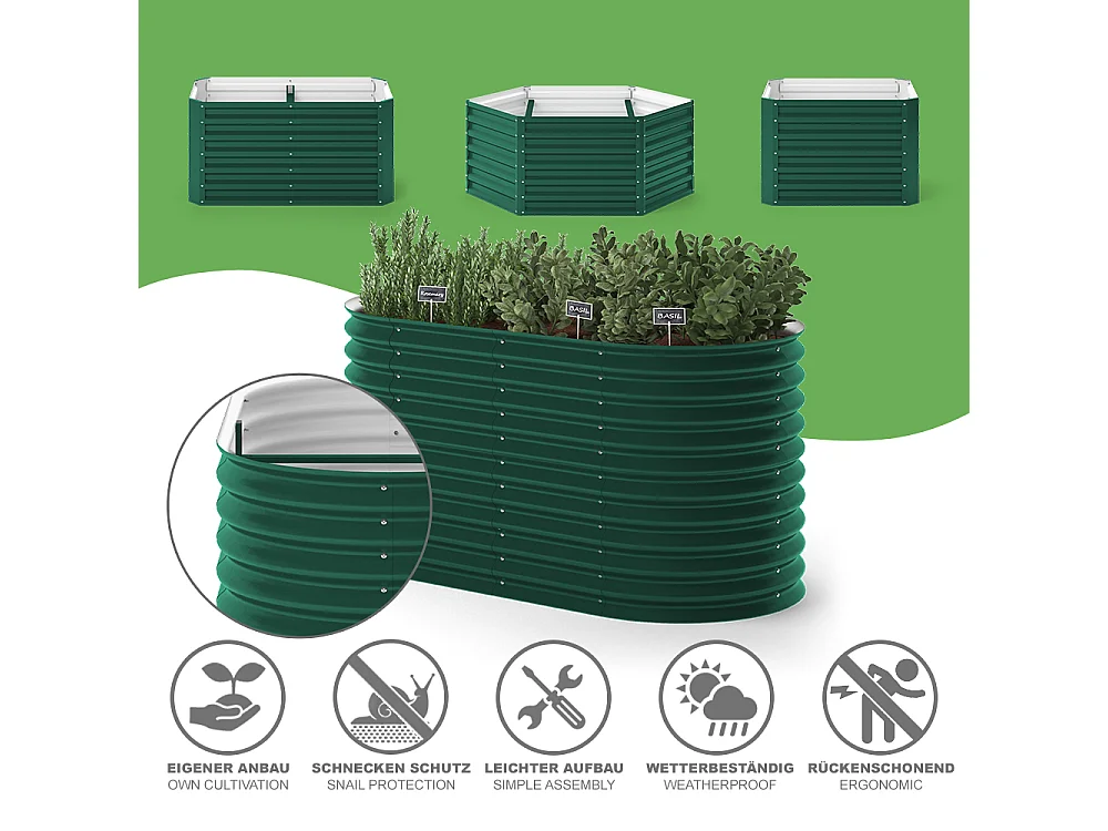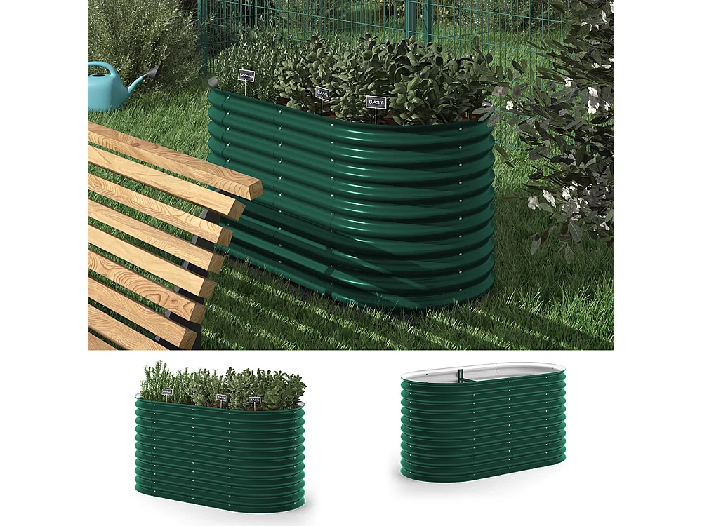 Lit surélevé de jardin Acier enduit de poudre 368x80x36 cm Vert