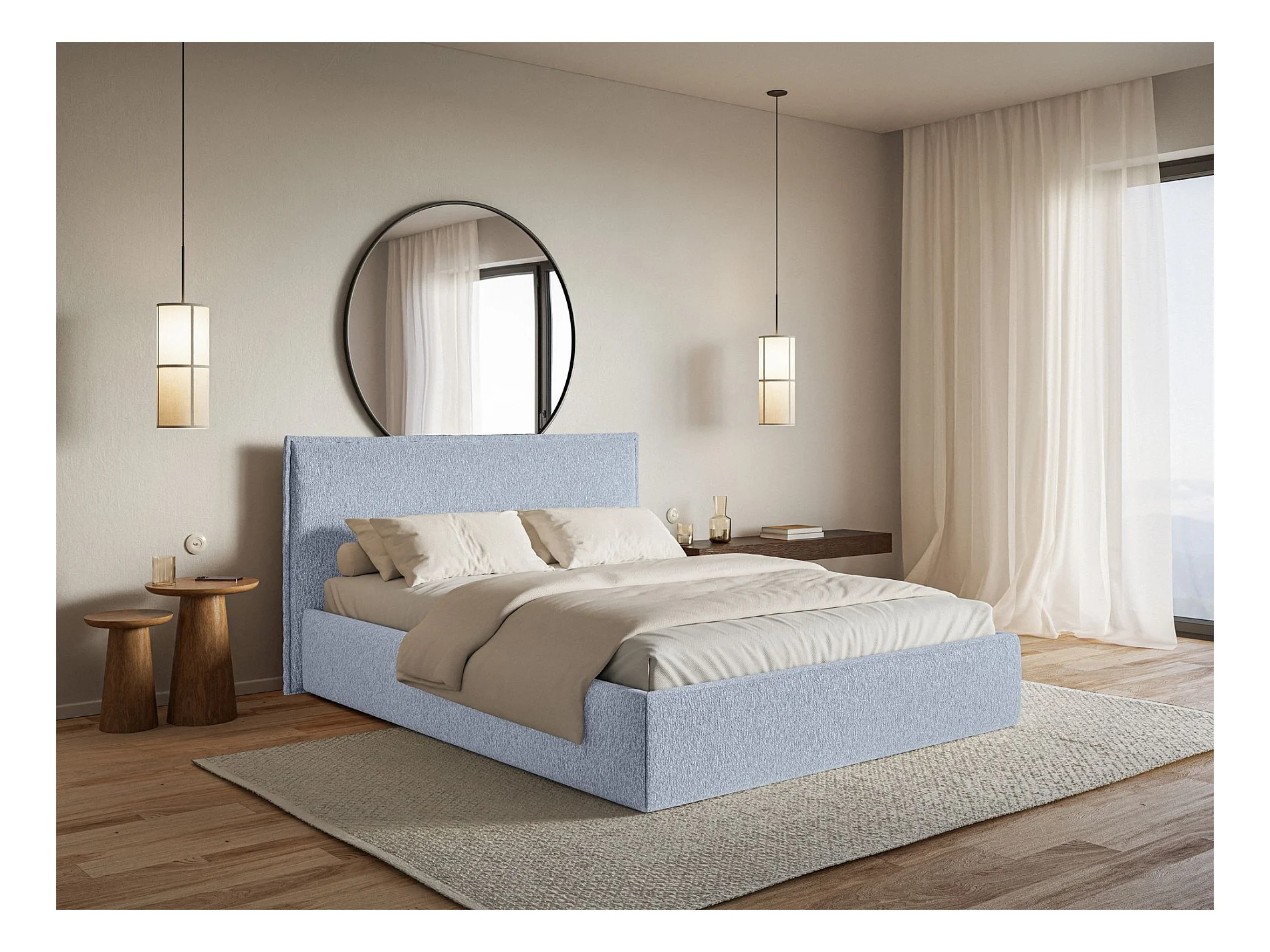 Lit tapissé 140×200 avec coffre et sommier - chenille - bleu clair - SOFTIE SLIM