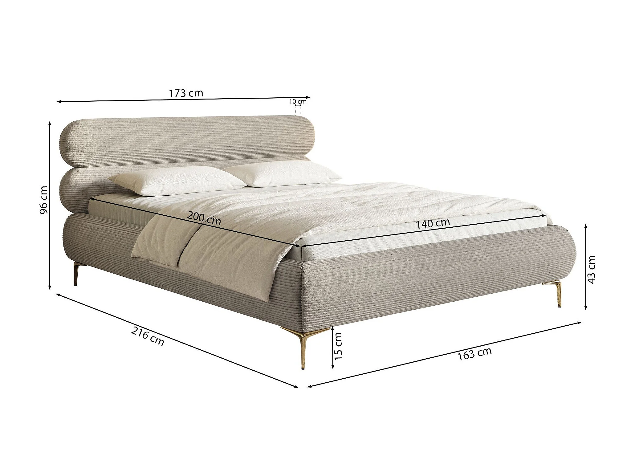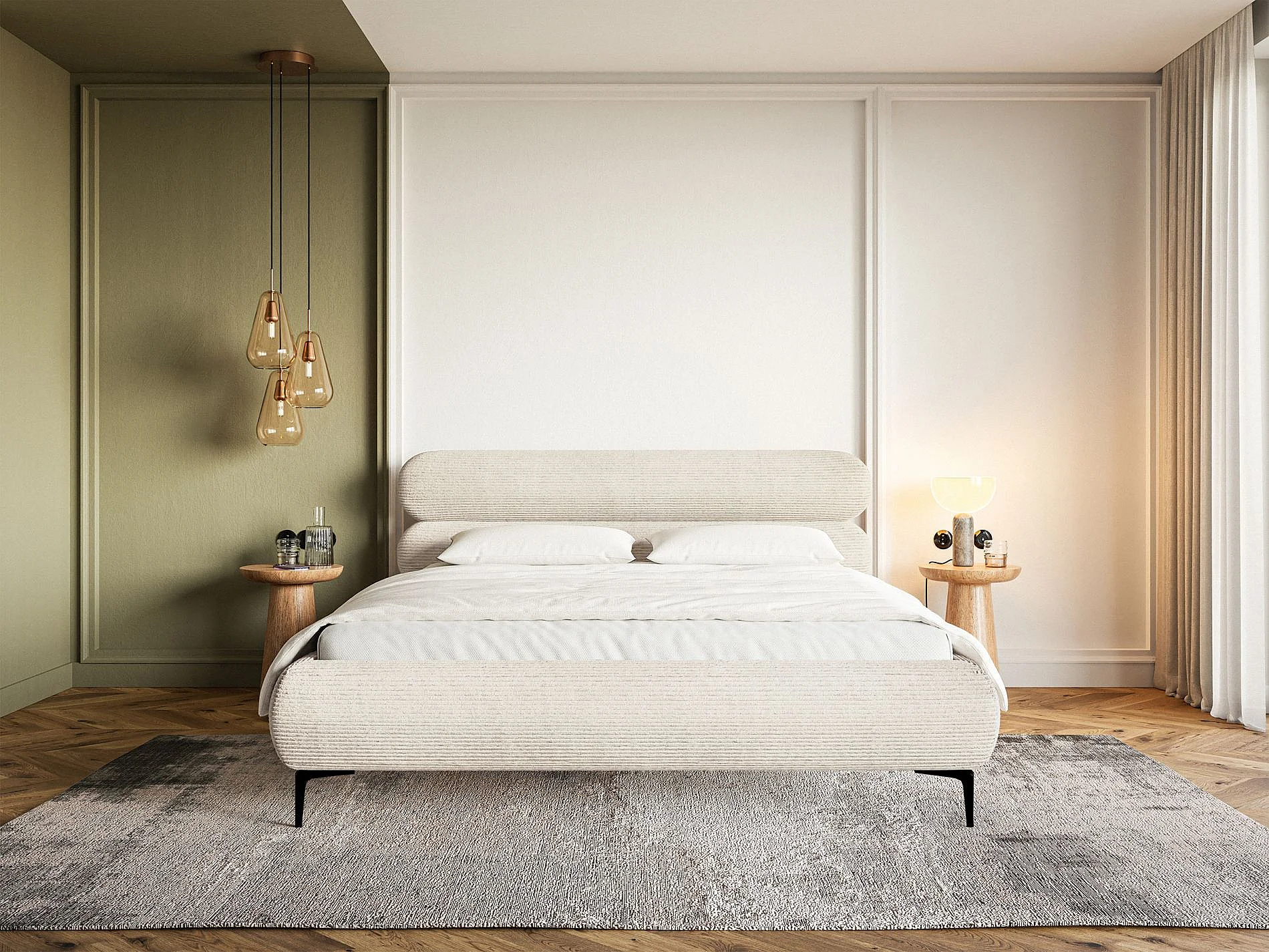 Lit tapissé 140x200 – sans rangement – velours côtelé – beige clair – ROULE CORD