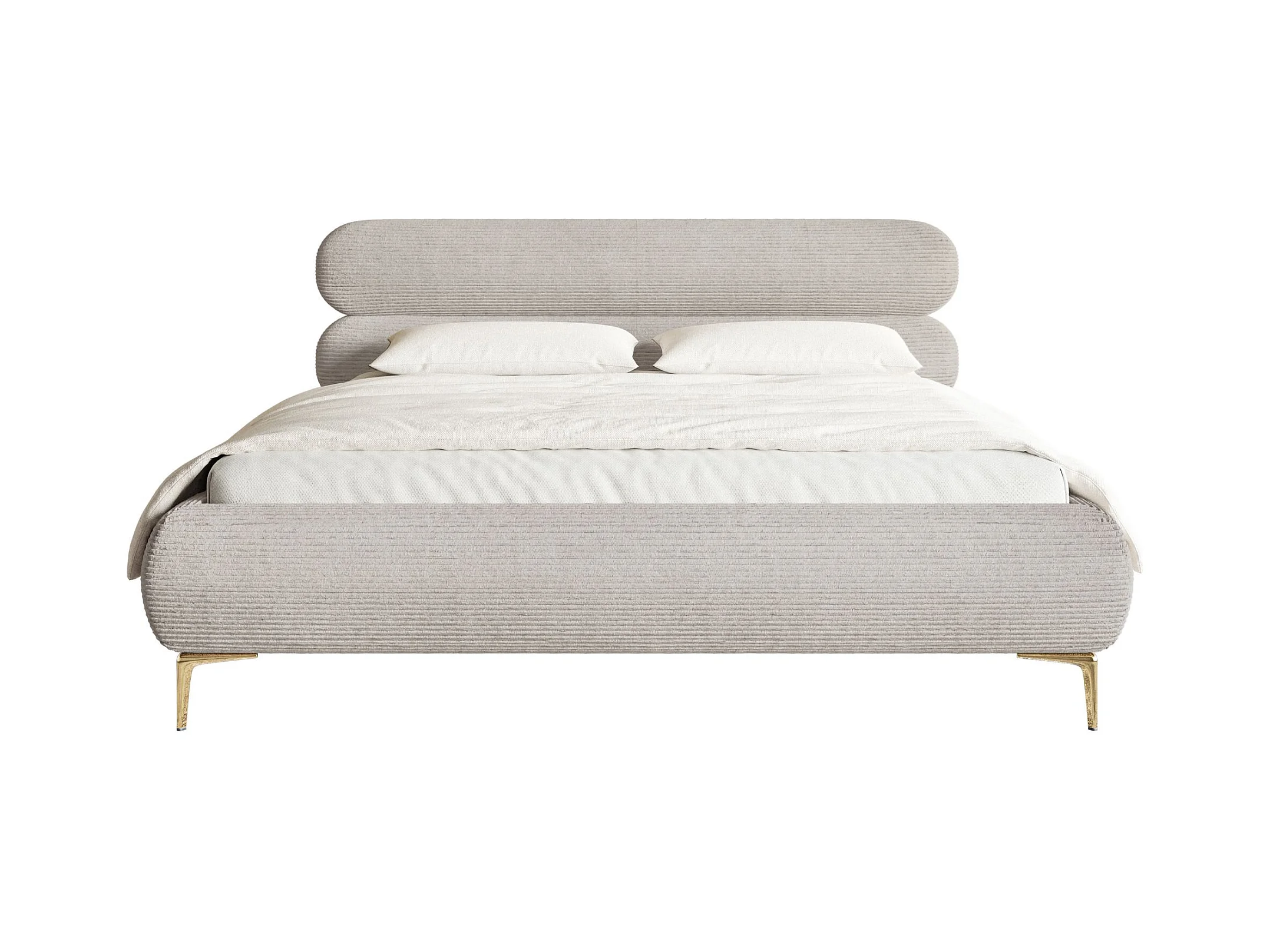 Lit tapissé 160x200 – rangement – velours côtelé – greige – ROULE CORD