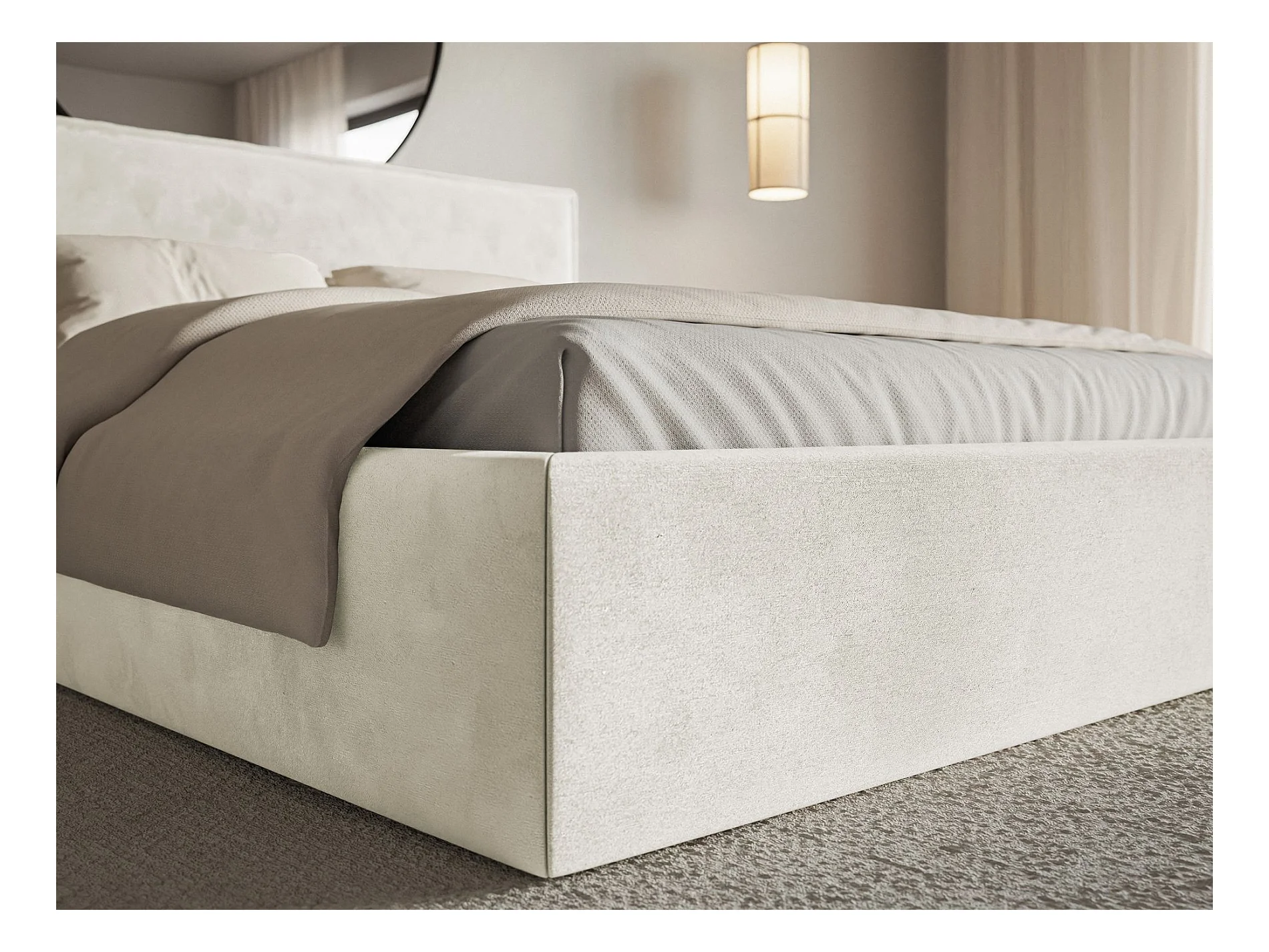 Lit tapissé 160×200- velours - grège - SOFTIE