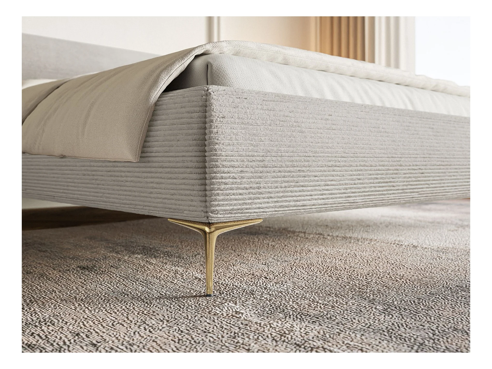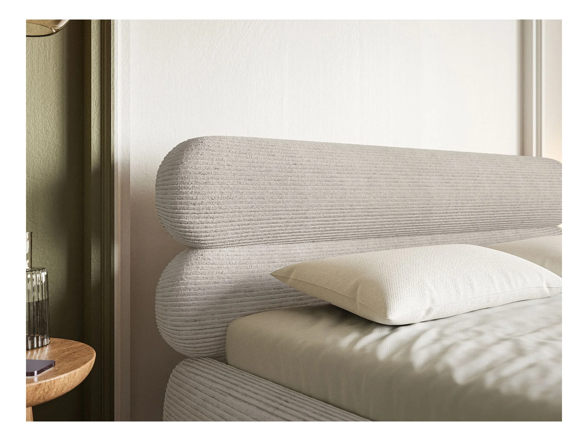 Lit tapissé 180x200 – rangement – velours côtelé – greige – ROULE CORD