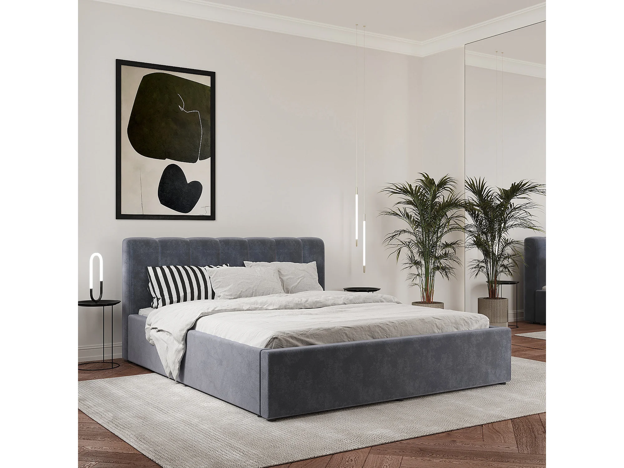 Lit tapissé Almo haaus, 200 x 160 cm, Gris clair