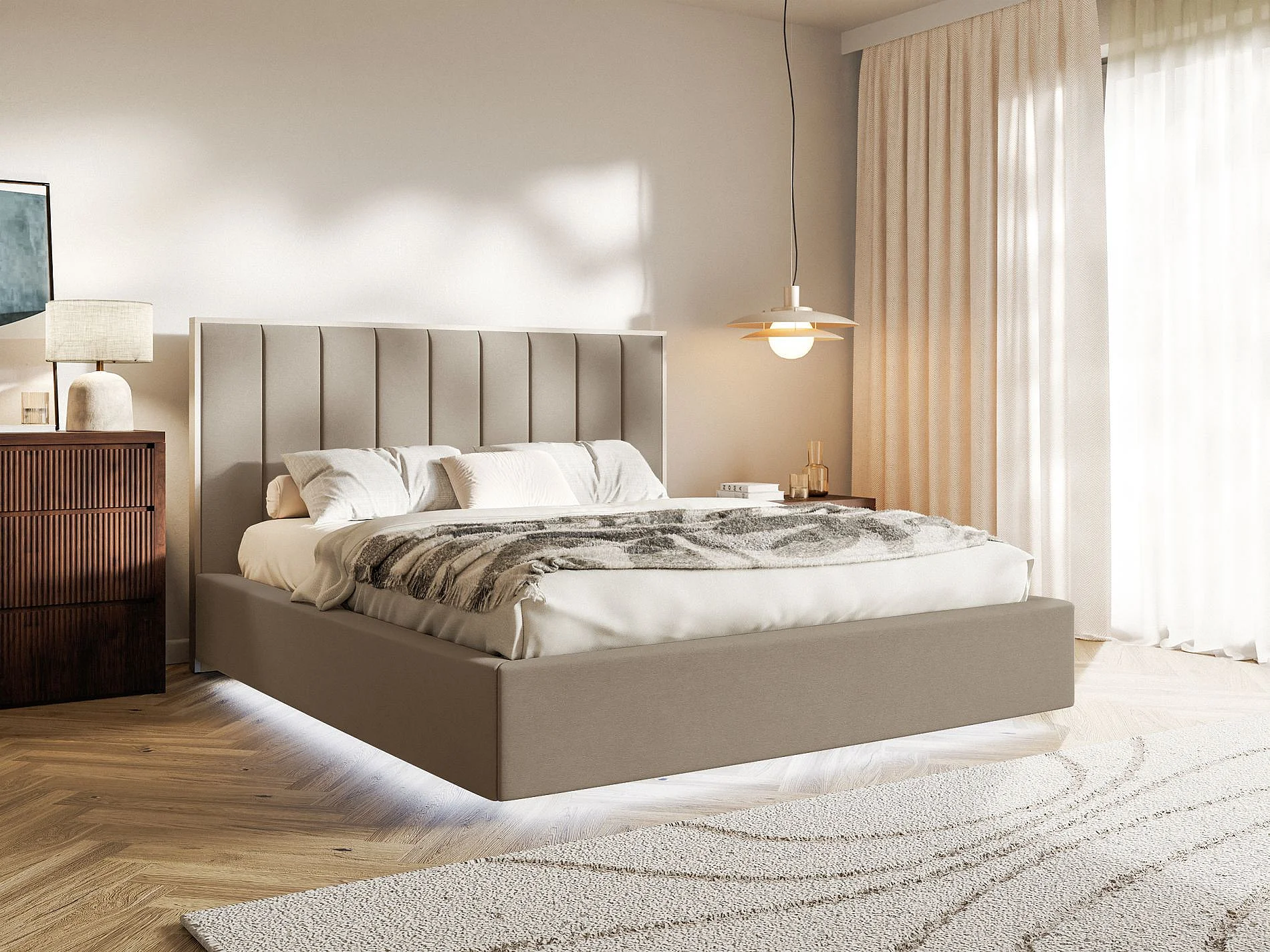 Lit tapissé avec coffre et LED 160×200 - velours - brun- TOGENTS