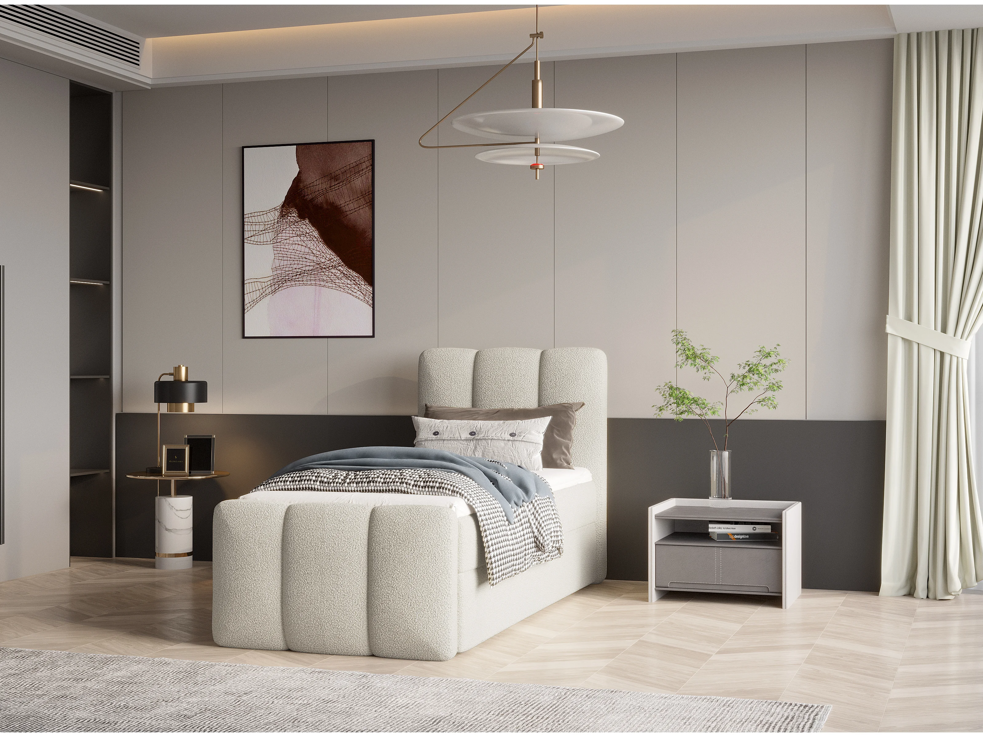 Lit tapissé élégant KORA 90x200 cm en tissu CENTAUR 1 blanc cassé