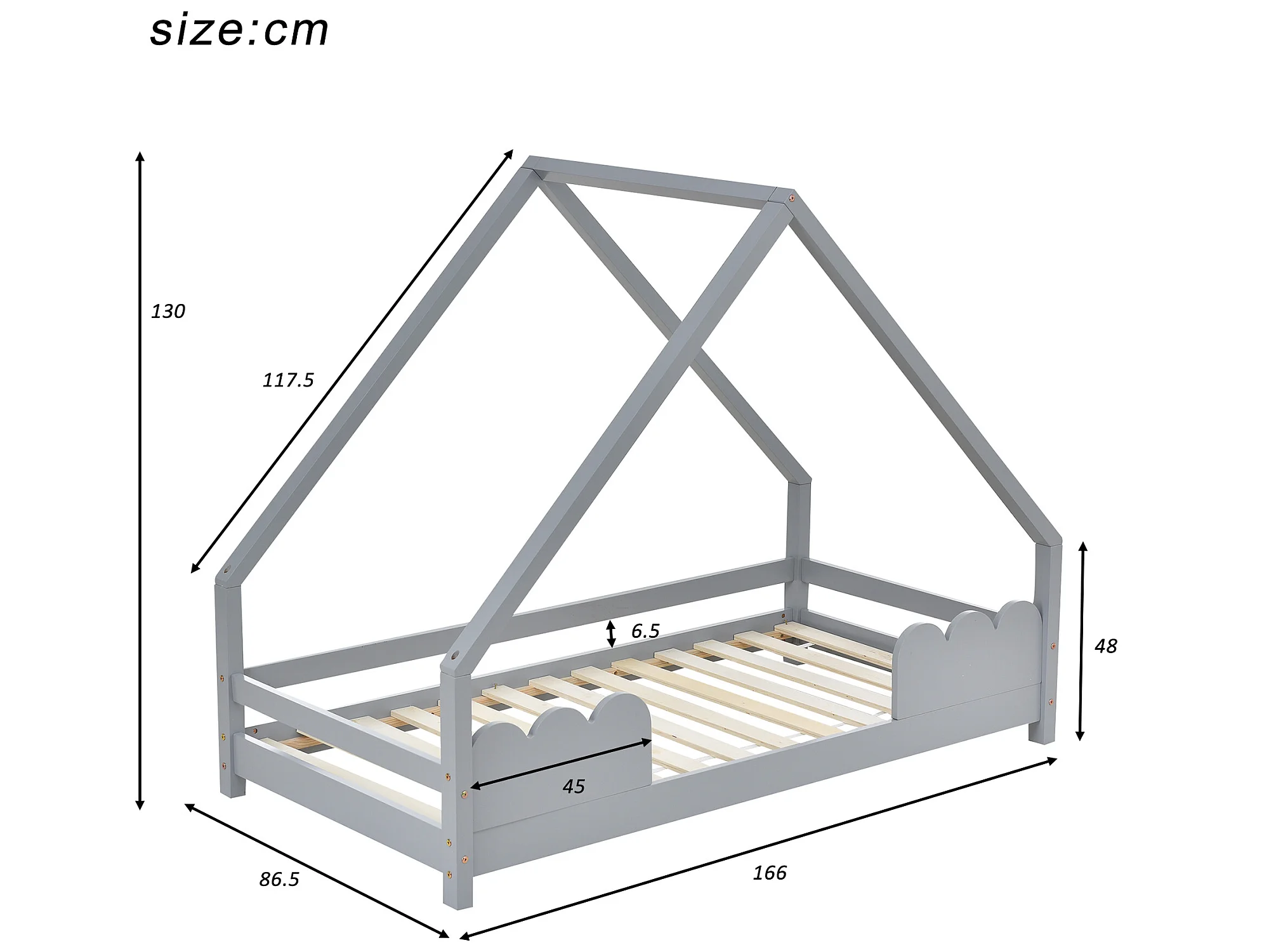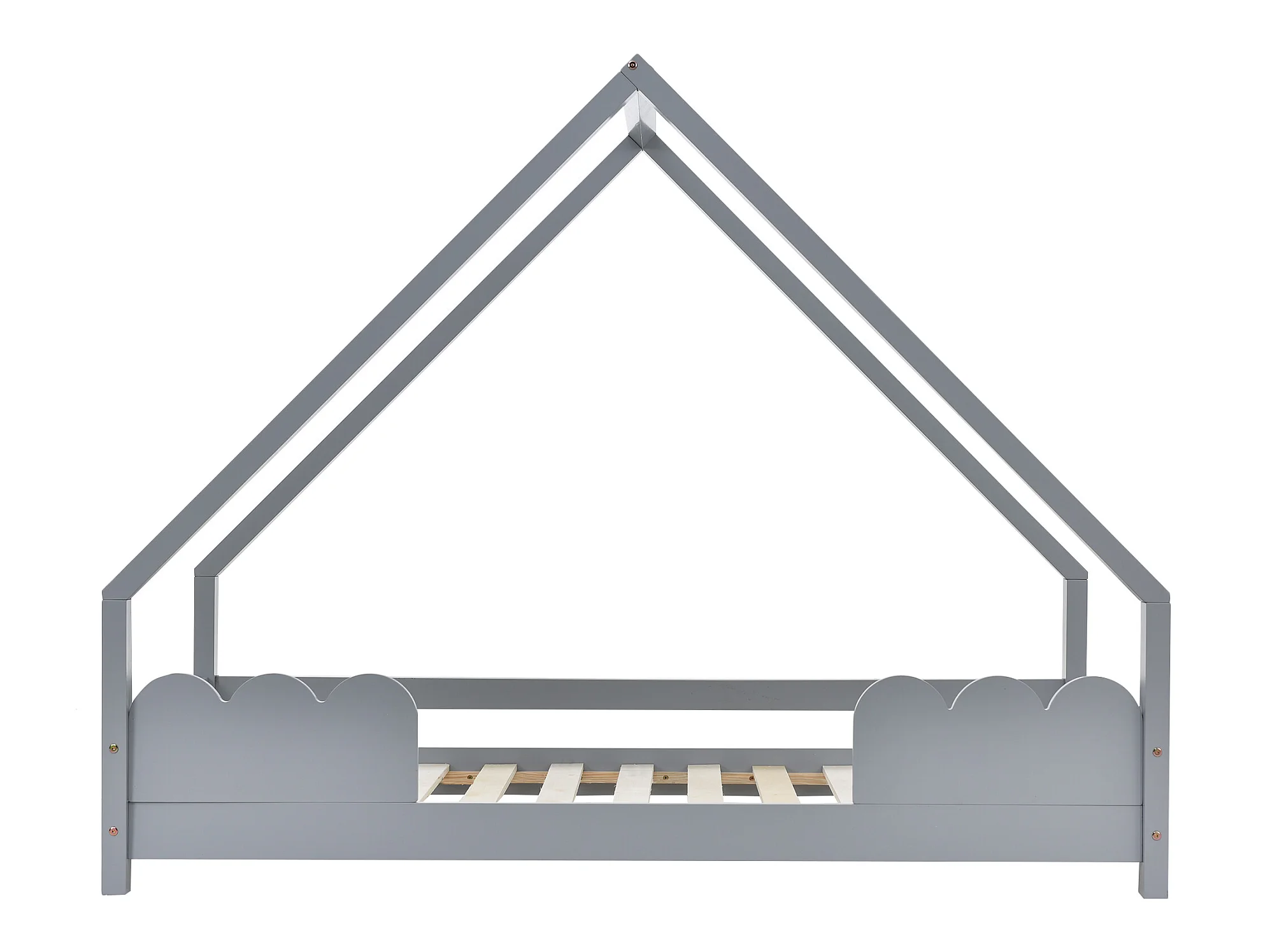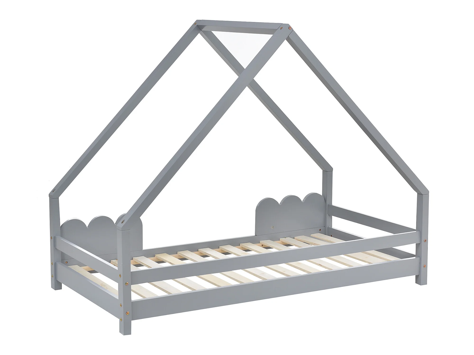 Lit tipi 80 x 160 cm - pin - sommier à lattes - gris