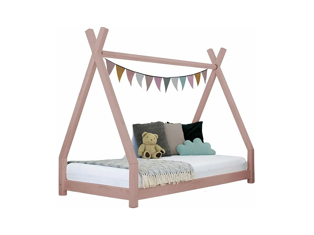 Lit tipi enfant NAKANA 120 x 180 rose pastel