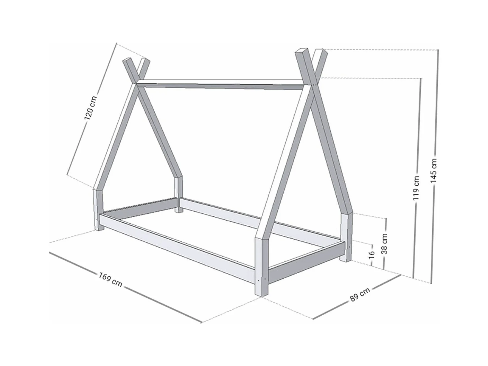 Lit tipi enfant NAKANA 80 x 160 gris clair