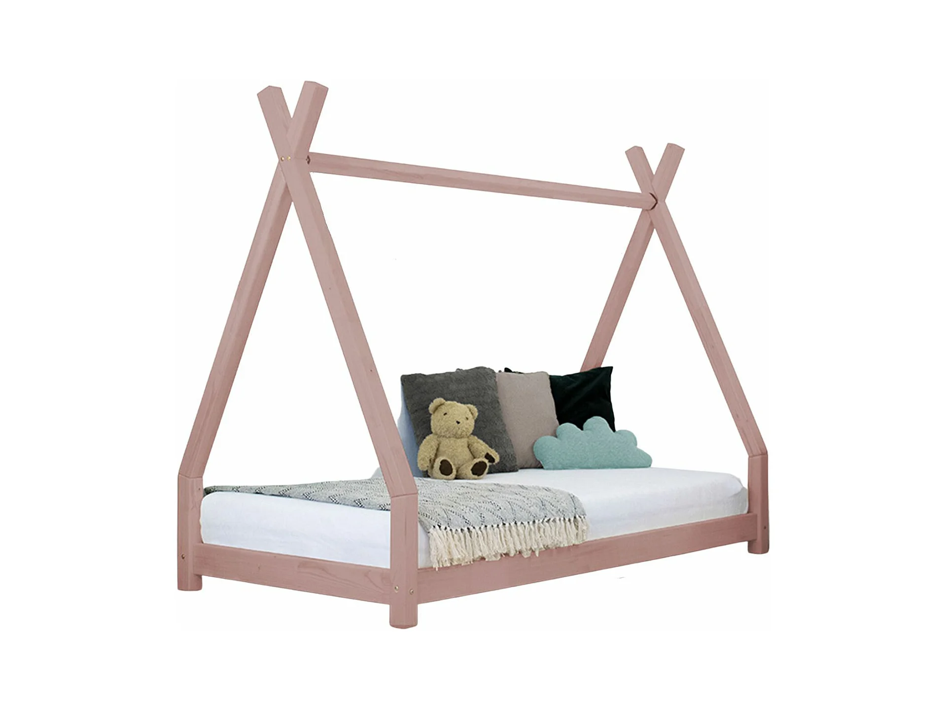 Lit tipi enfant NAKANA 90 x 180 rose pastel