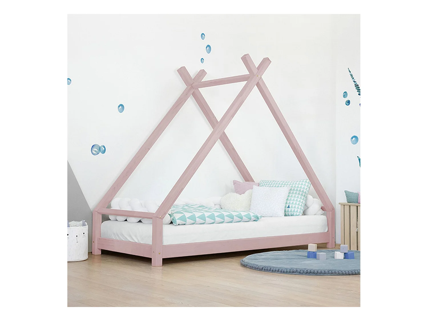 Lit tipi enfant TAHUKA 140 x 200 rose pastel