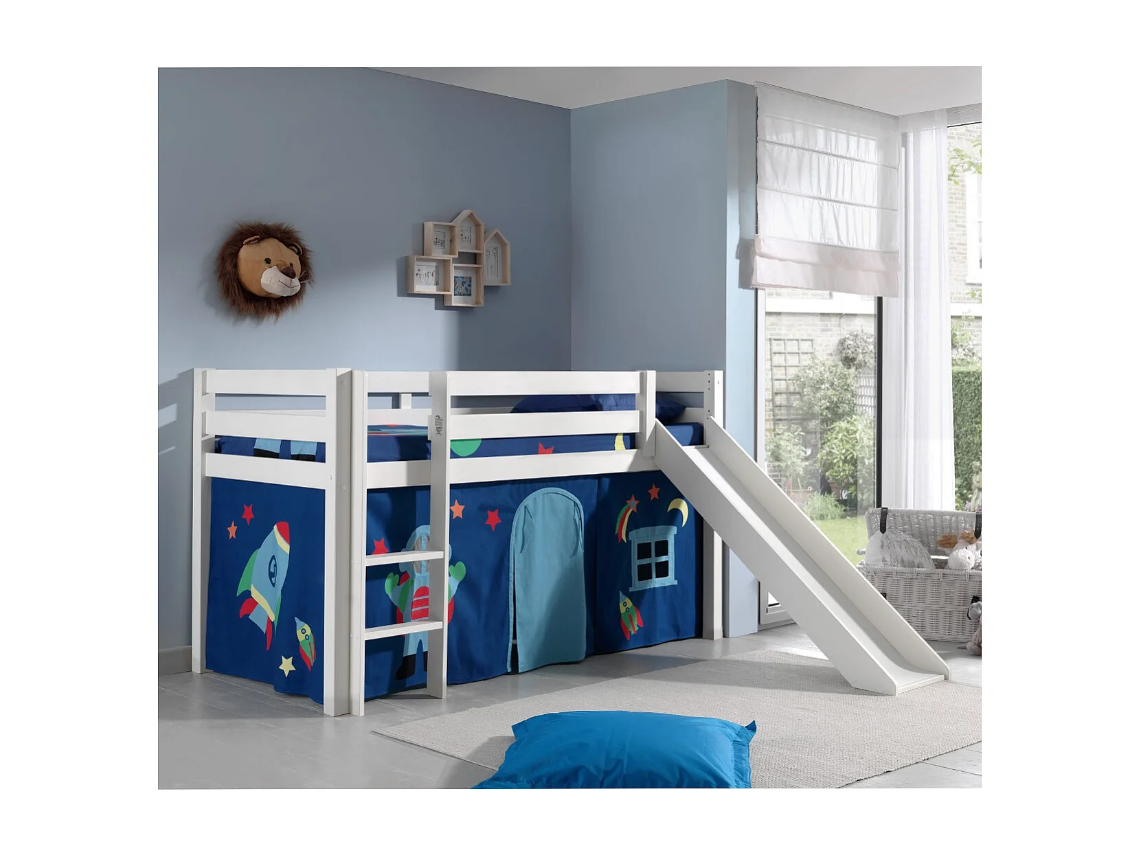 Lit Enfant Avec Toboggan "Pino Astronaute II" 90x200cm Blanc