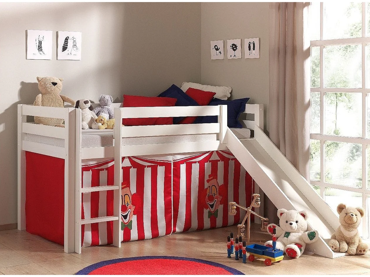 Lit Enfant Avec Toboggan "Pino Cirque" 90x200cm Blanc