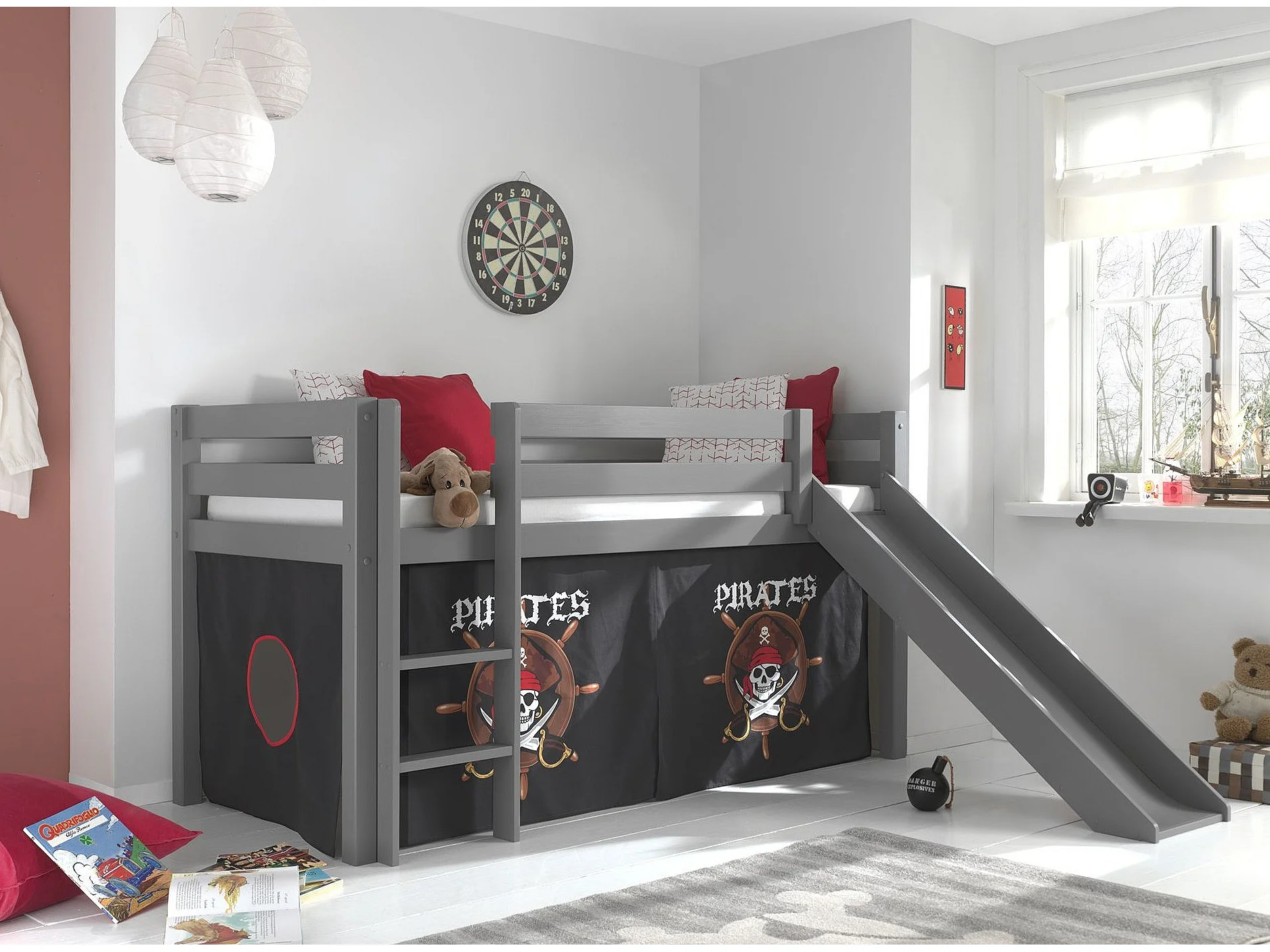 Pack - Lit Enfant Toboggan & Tente "Pino Pirates II" Gris