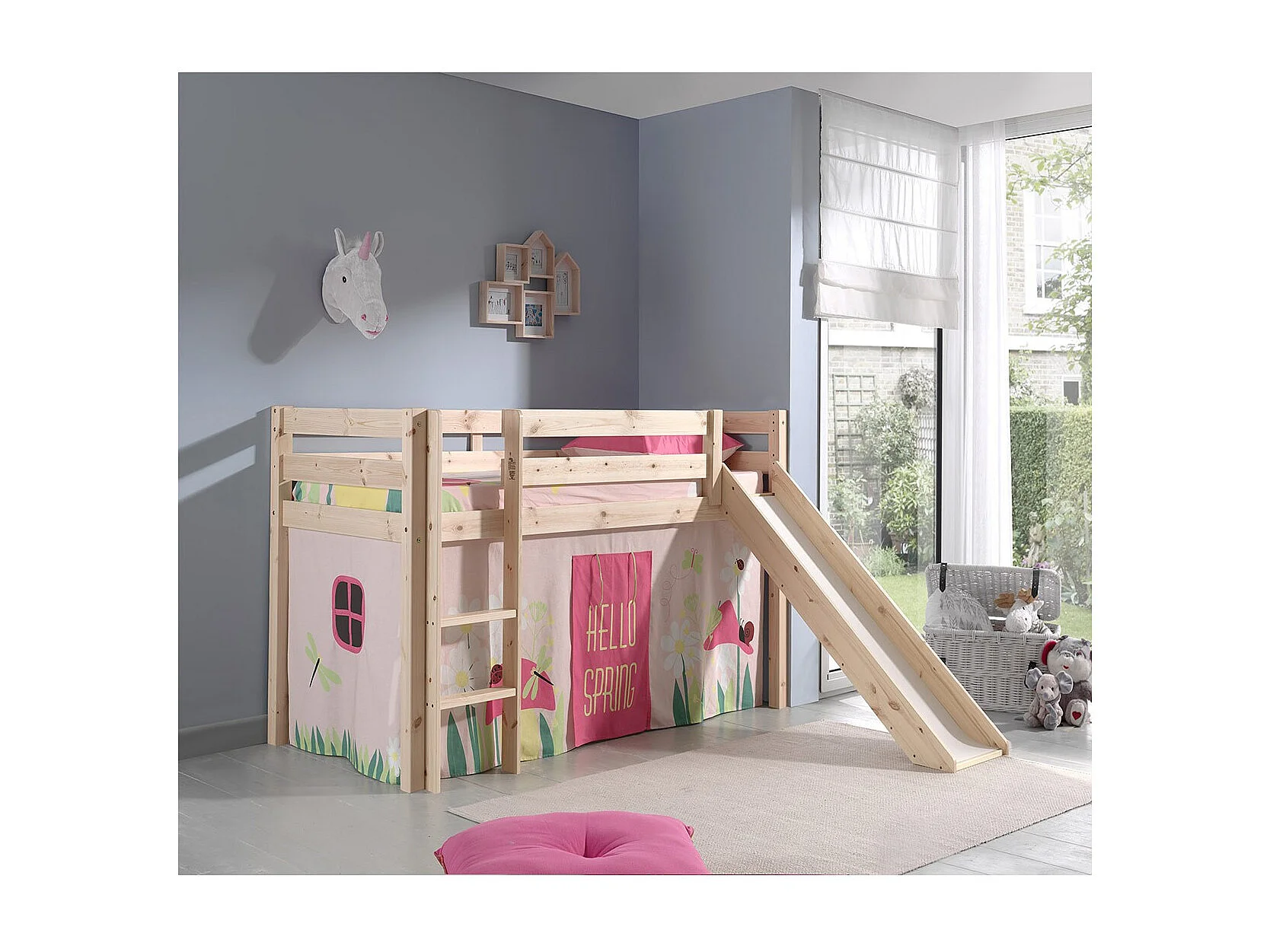 Lit Enfant Avec Toboggan "Pino Spring" 90x200cm Naturel