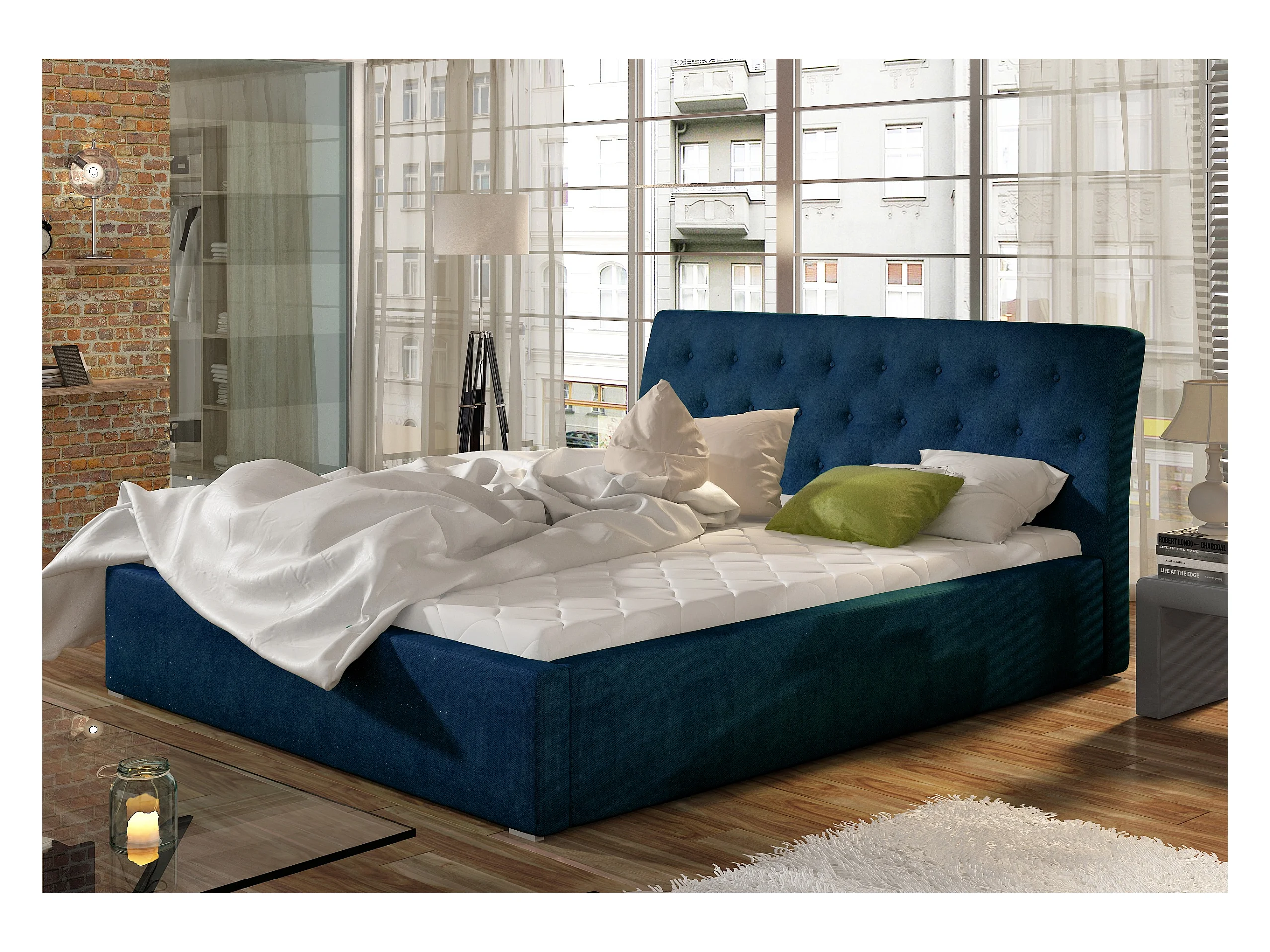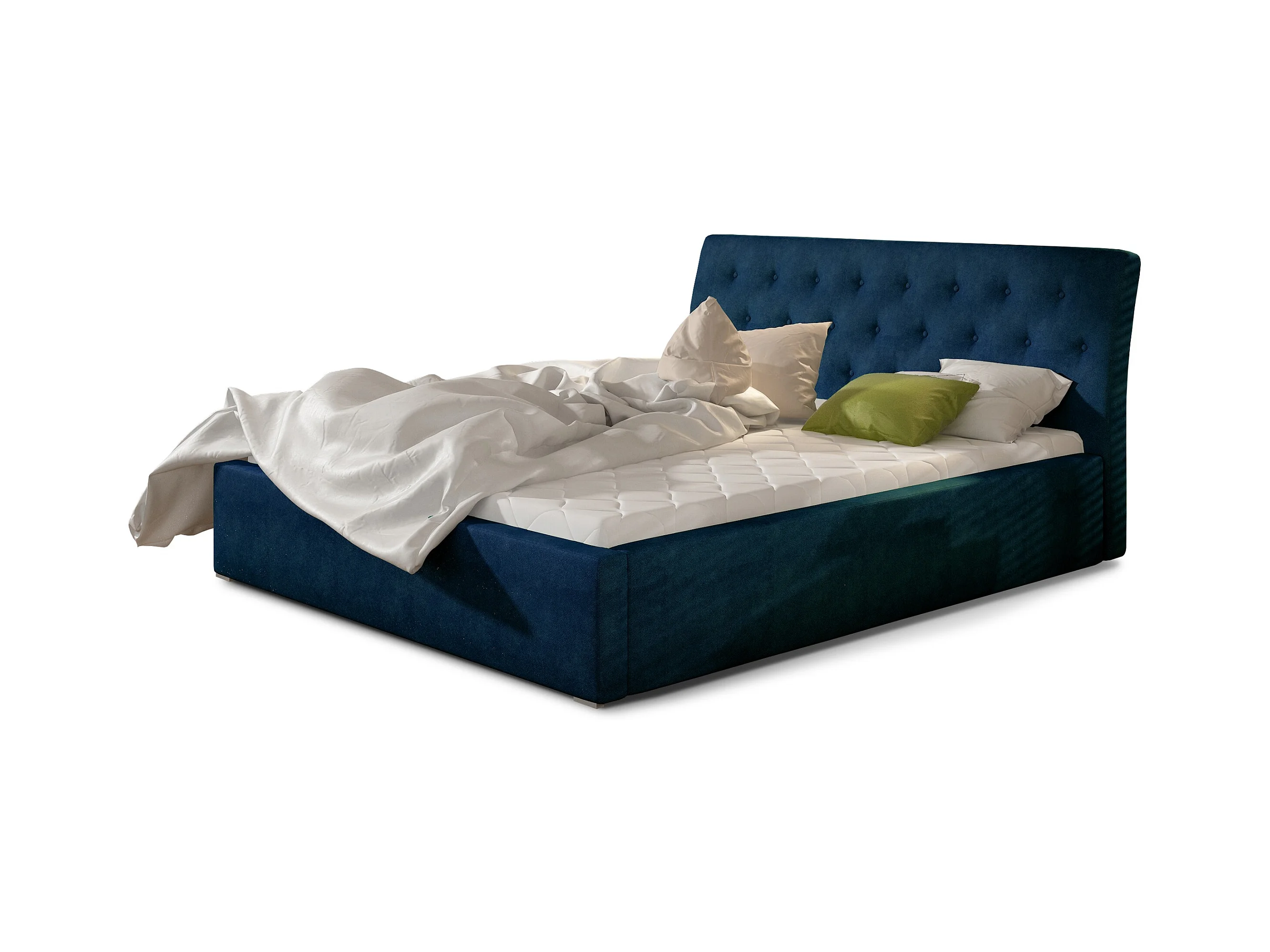 Lit velours capitonné Venizia-Couleur Bleu nuit-140x200-Version coffre de rangement