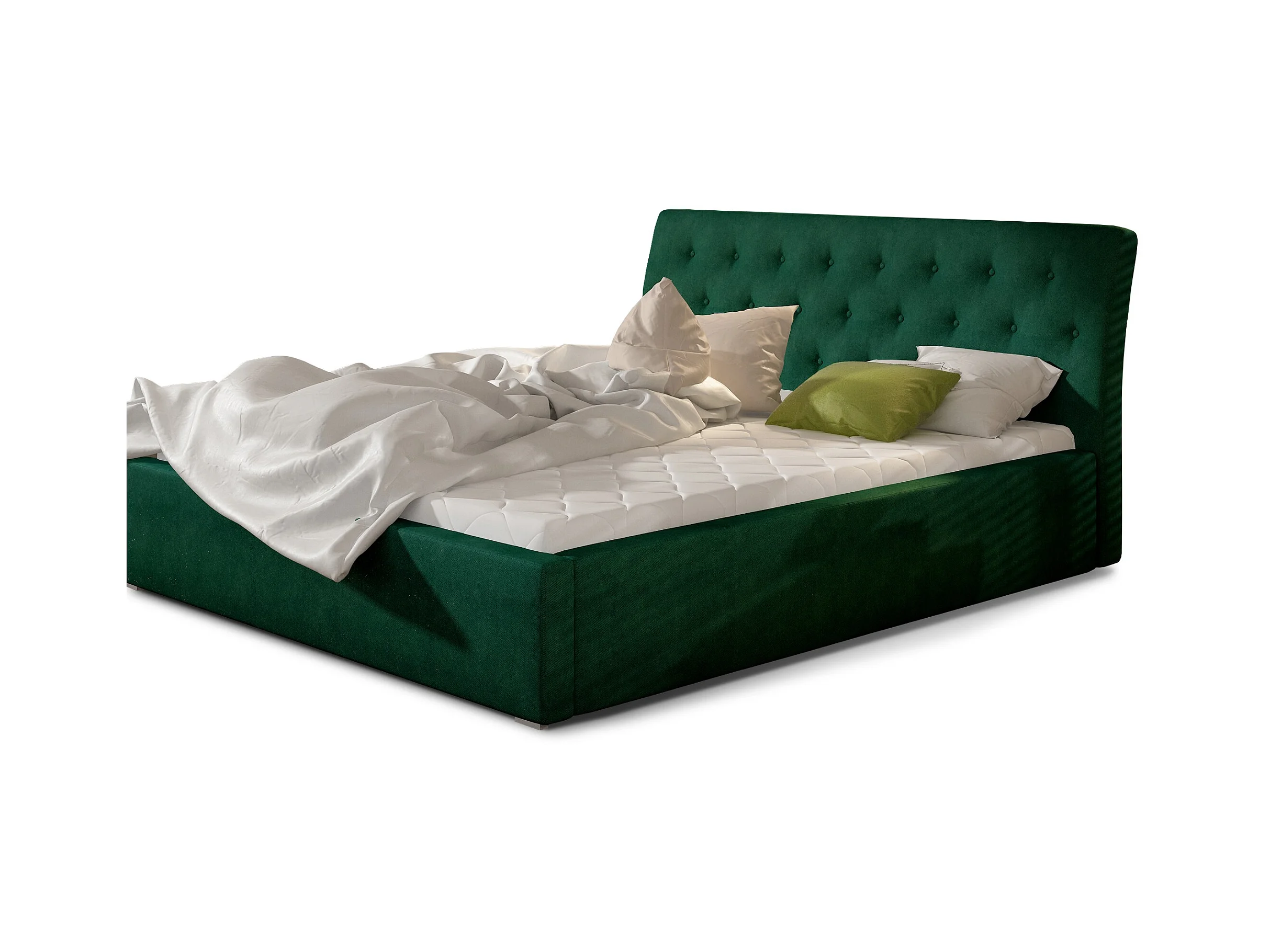 Lit velours capitonné Venizia-Couleur Bleu canard-140x200-Version avec sommier