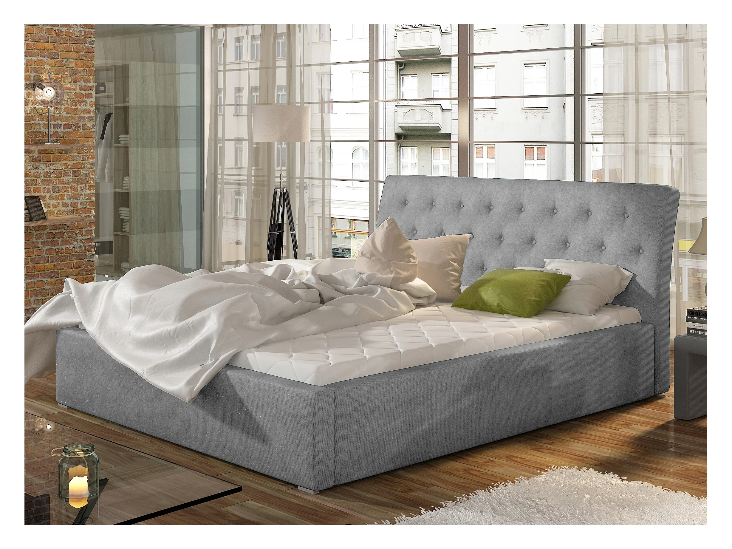 Lit velours capitonné Venizia-Couleur Gris-160x200-Version coffre de rangement