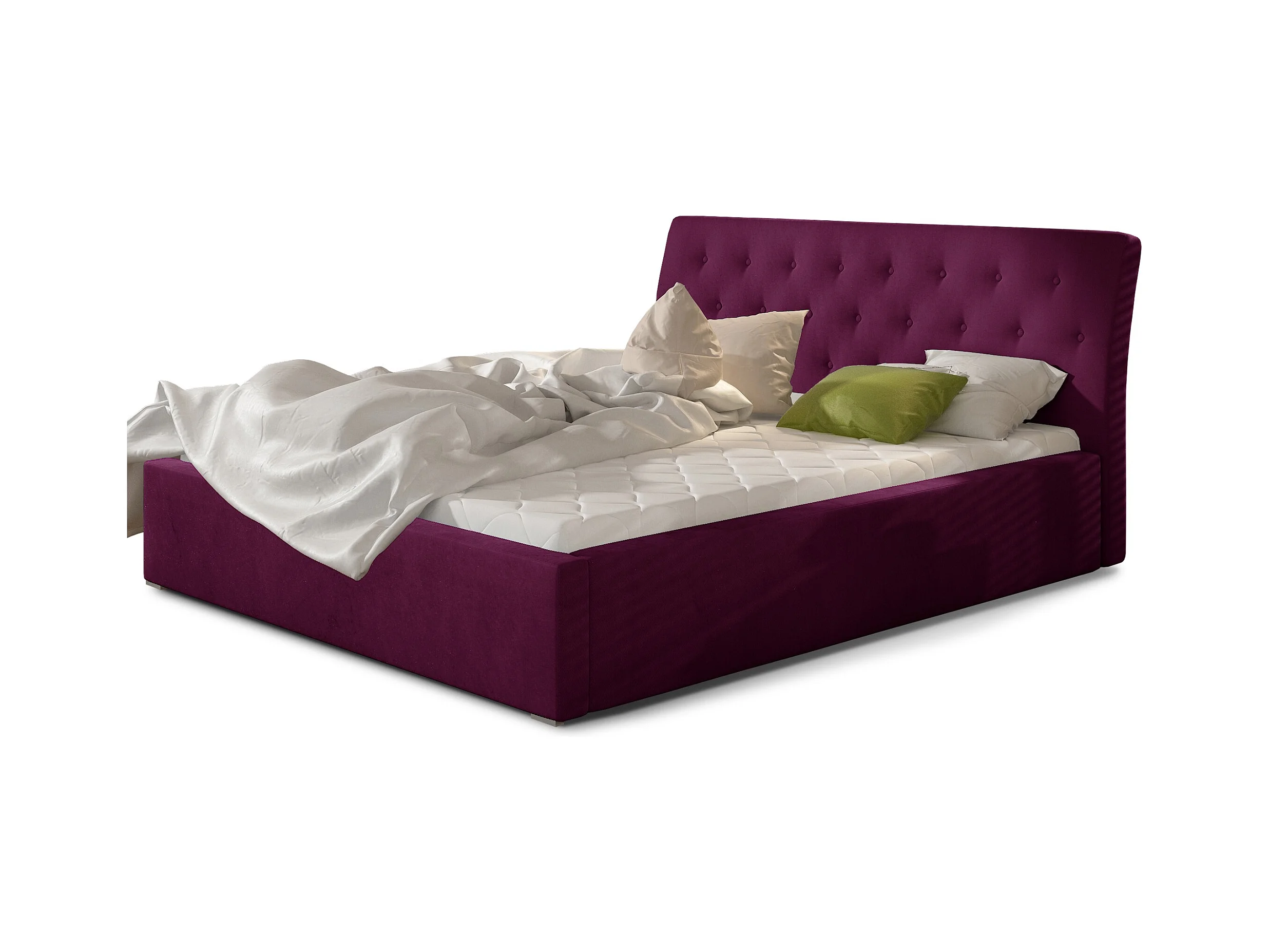 Lit velours capitonné Venizia-Couleur Magenta foncé-160x200-Version avec sommier