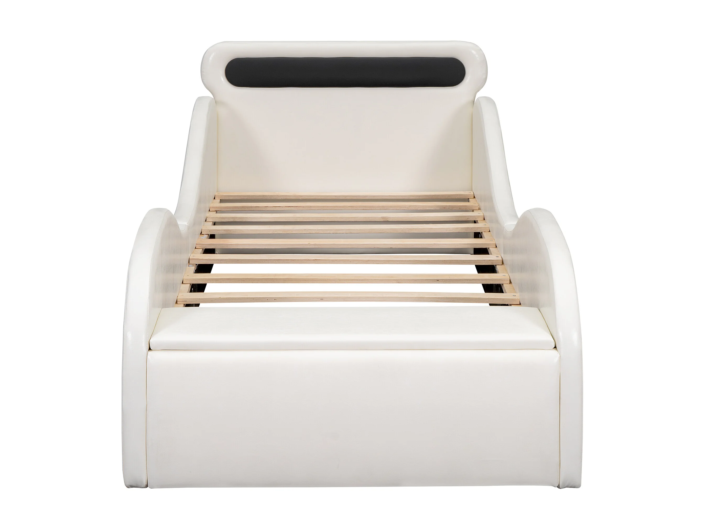 Lit voiture 90x200cm, avec roues lumineuses, 2 tiroirs de rangement, PU, blanc (241x101x82 cm)