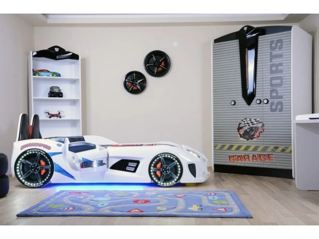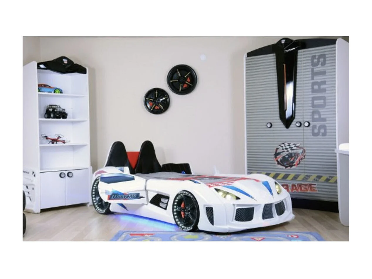 Lit voiture de sport COMPETITION à LED et effets sonores – 90x190-Blanc