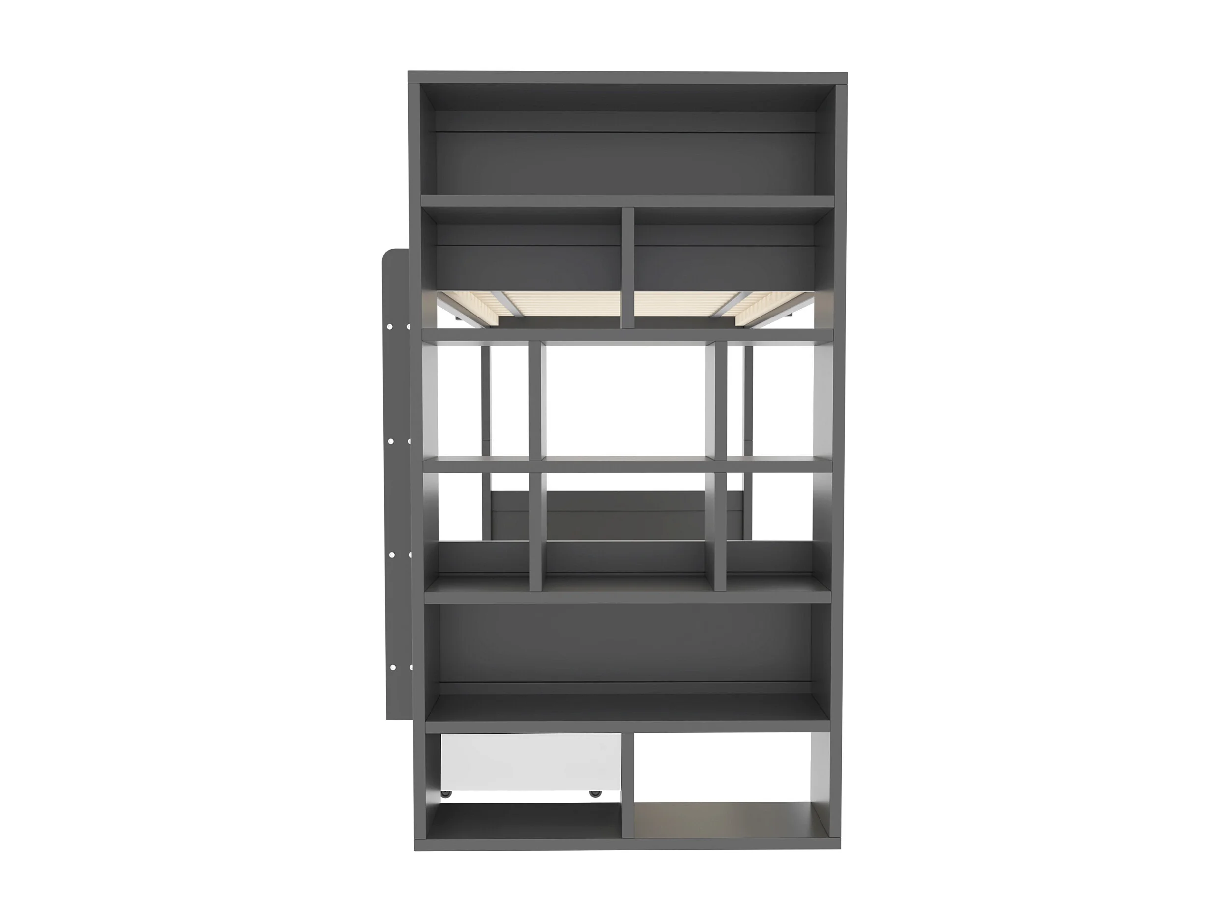 Lits superposés 2 x 90 x 200 cm avec 2 tiroirs et armoire latérale - bois de pin + MDF - gris (sans matelas)