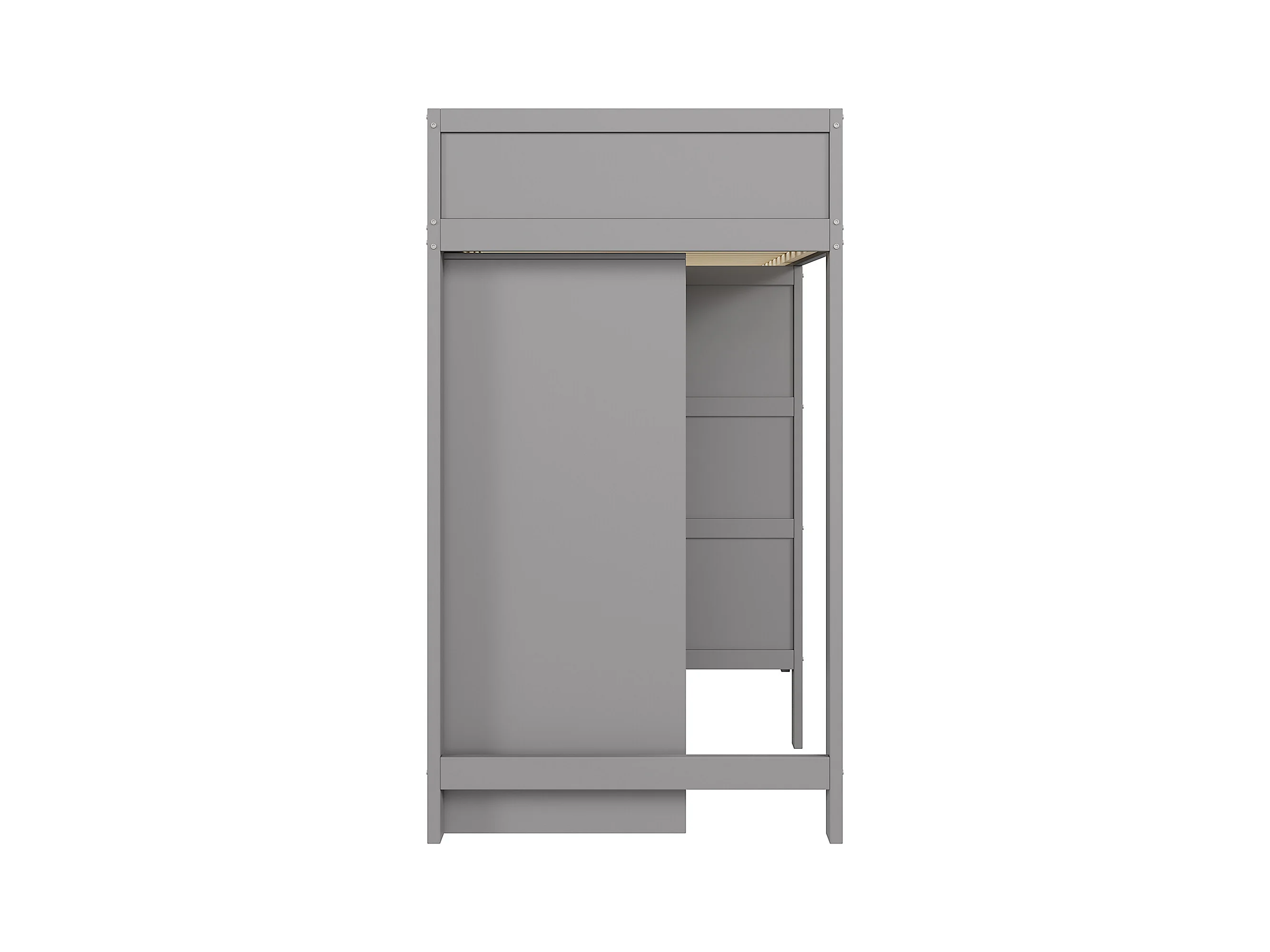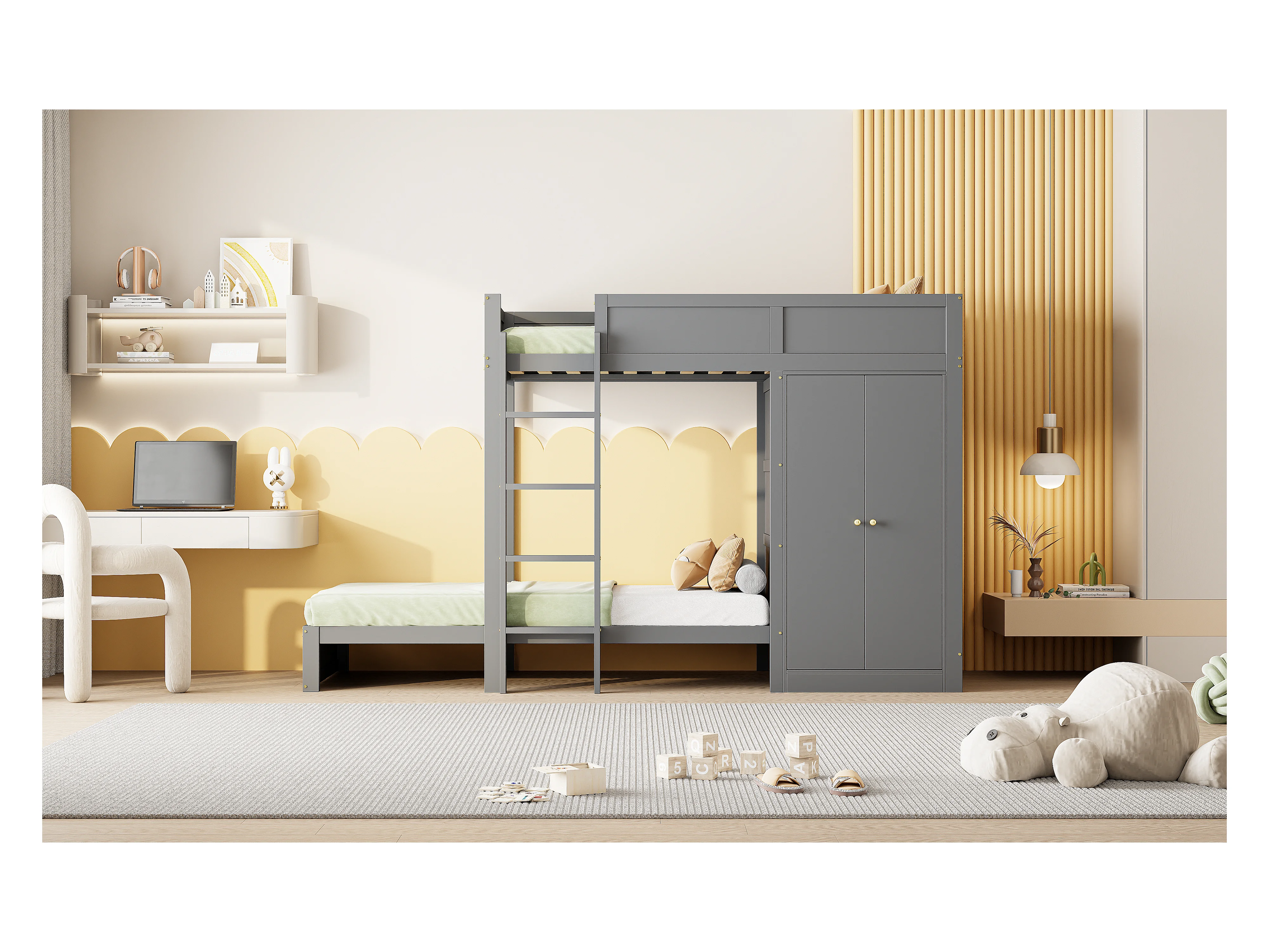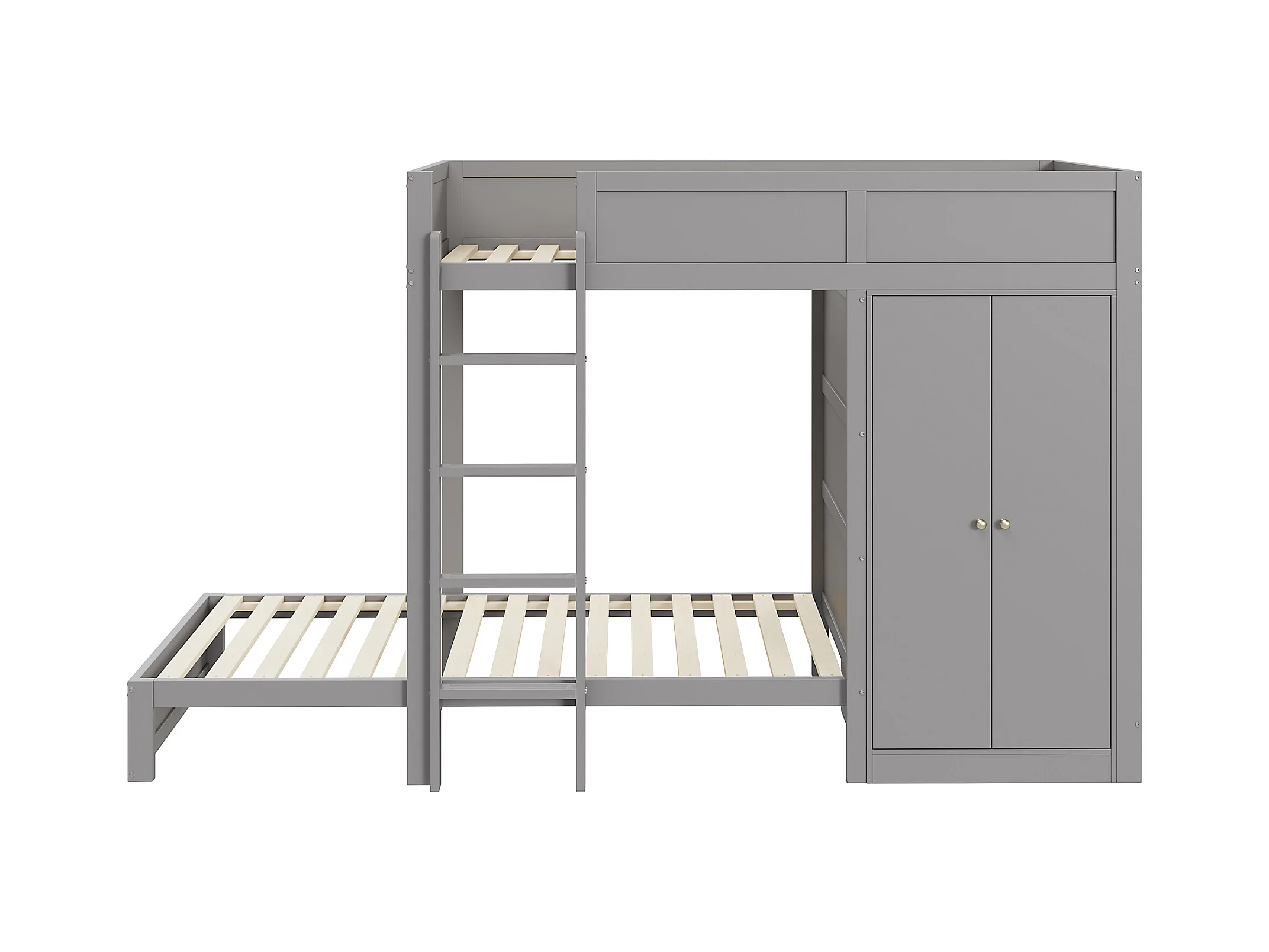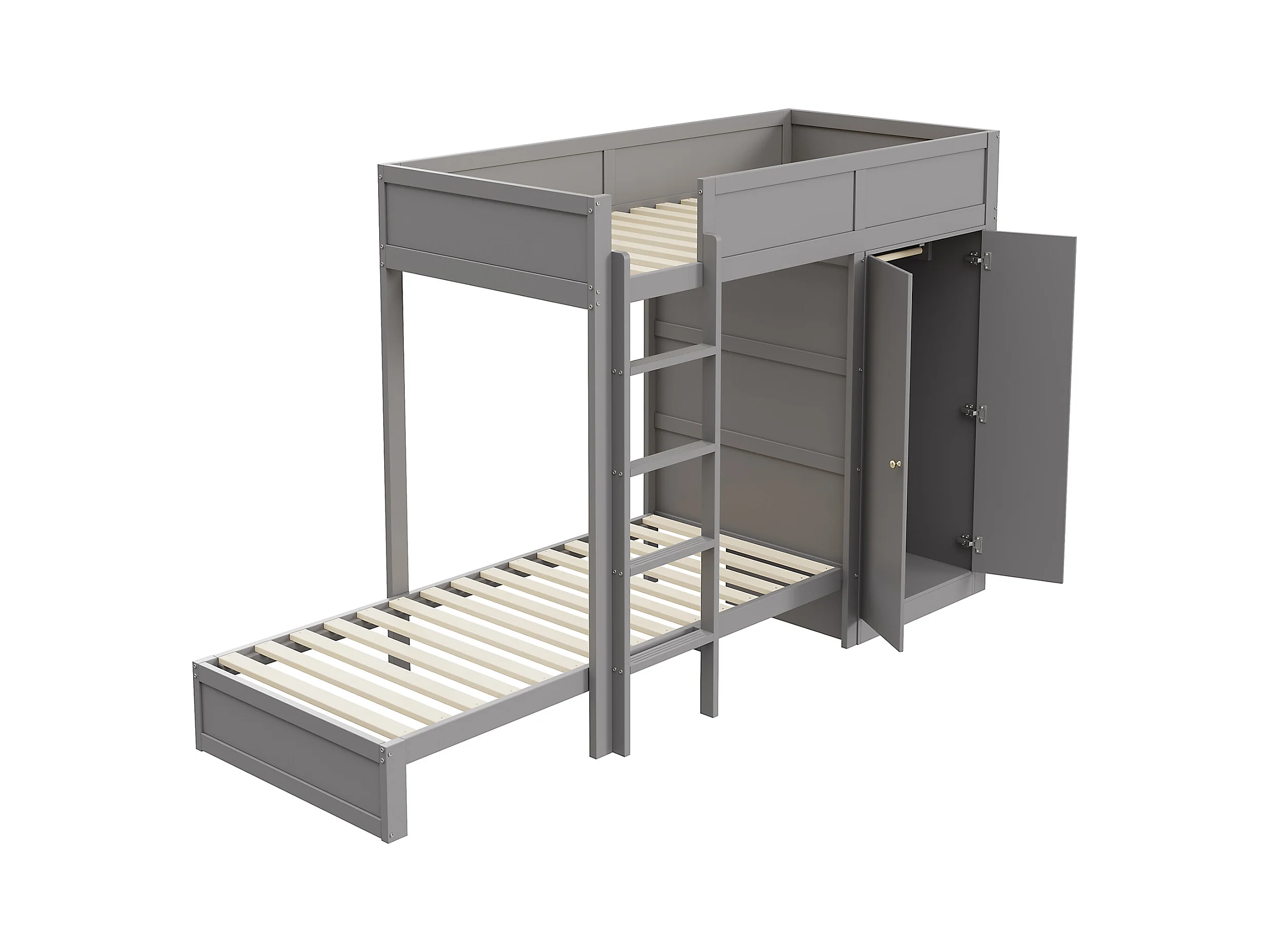Lits superposés 2 x 90 x 200 cm avec armoire et échelle - pin + MDF - gris (sans matelas)