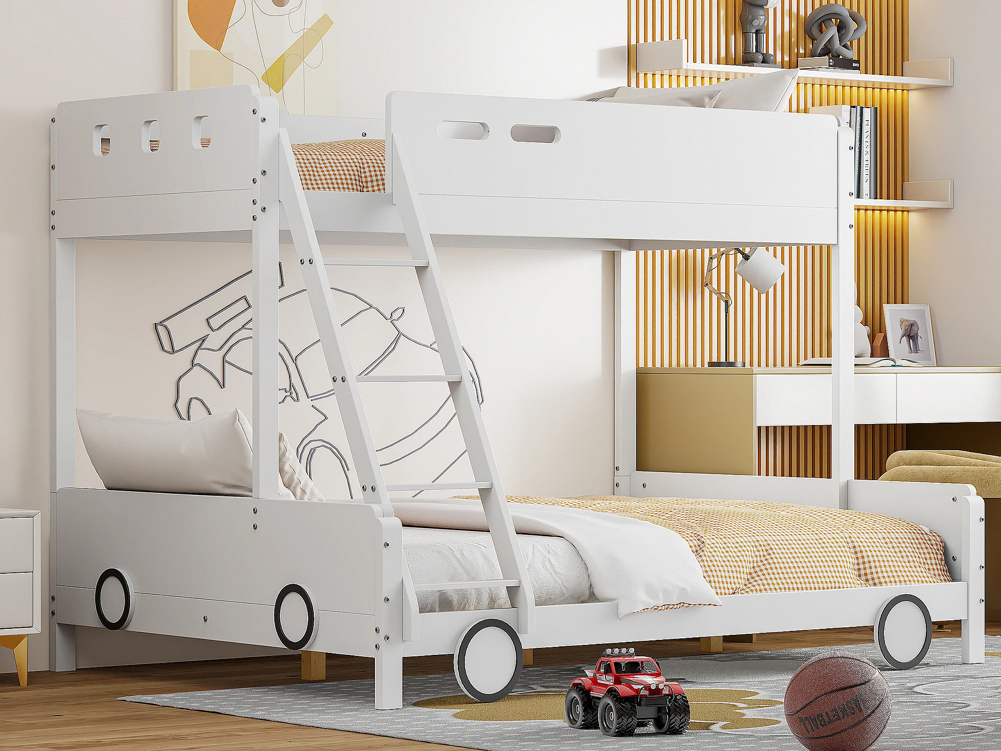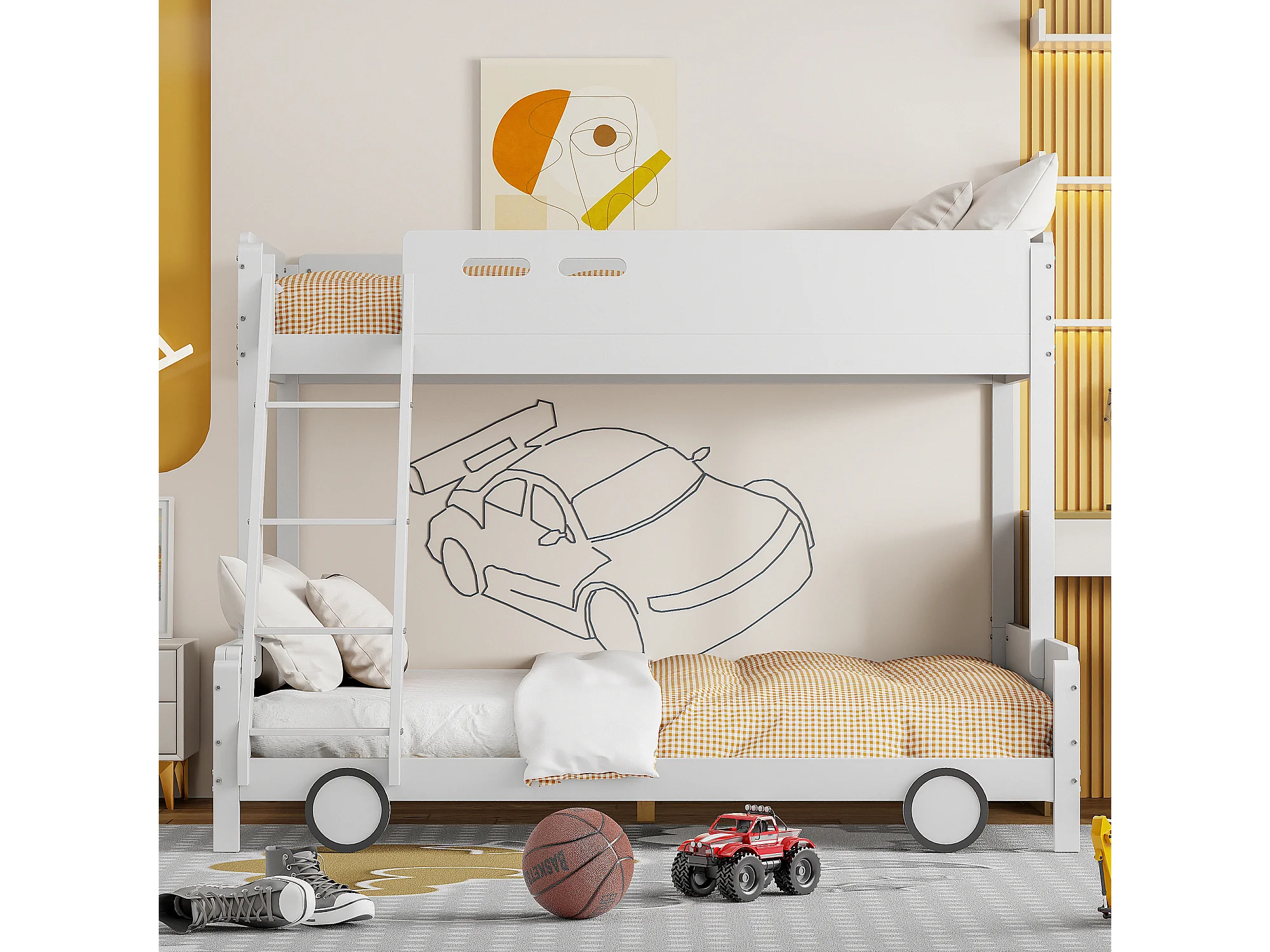 Lits superposés 90 x 200 cm + 140 x 200 cm avec échelle - bois massif - blanc