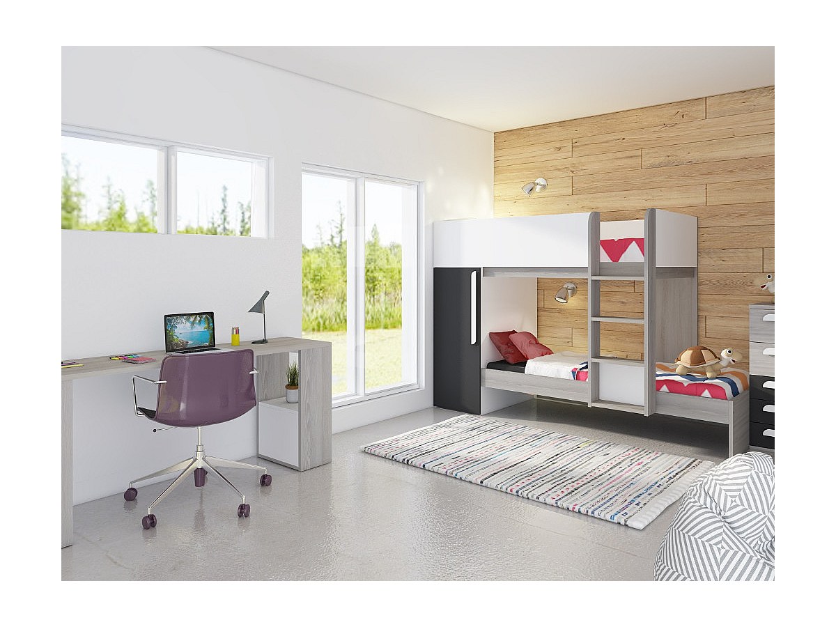 - Charge maximale supportée par les lits : 75 kg pour les lits superposés, 70 kg pour le lit tiroir