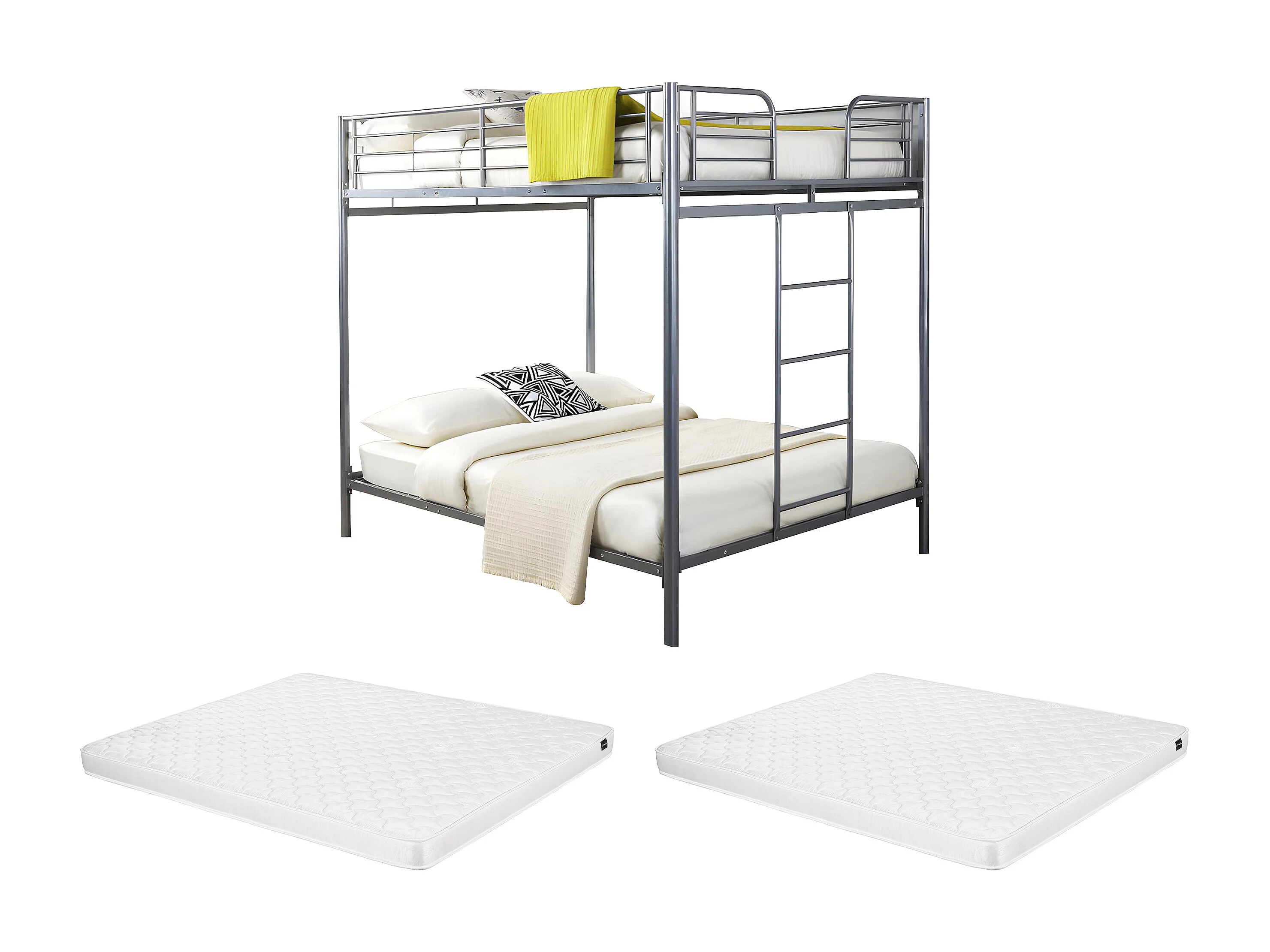 Lits superposés 2 x 140 x 190 cm - Métal - Argent + Matelas - GEMINI II