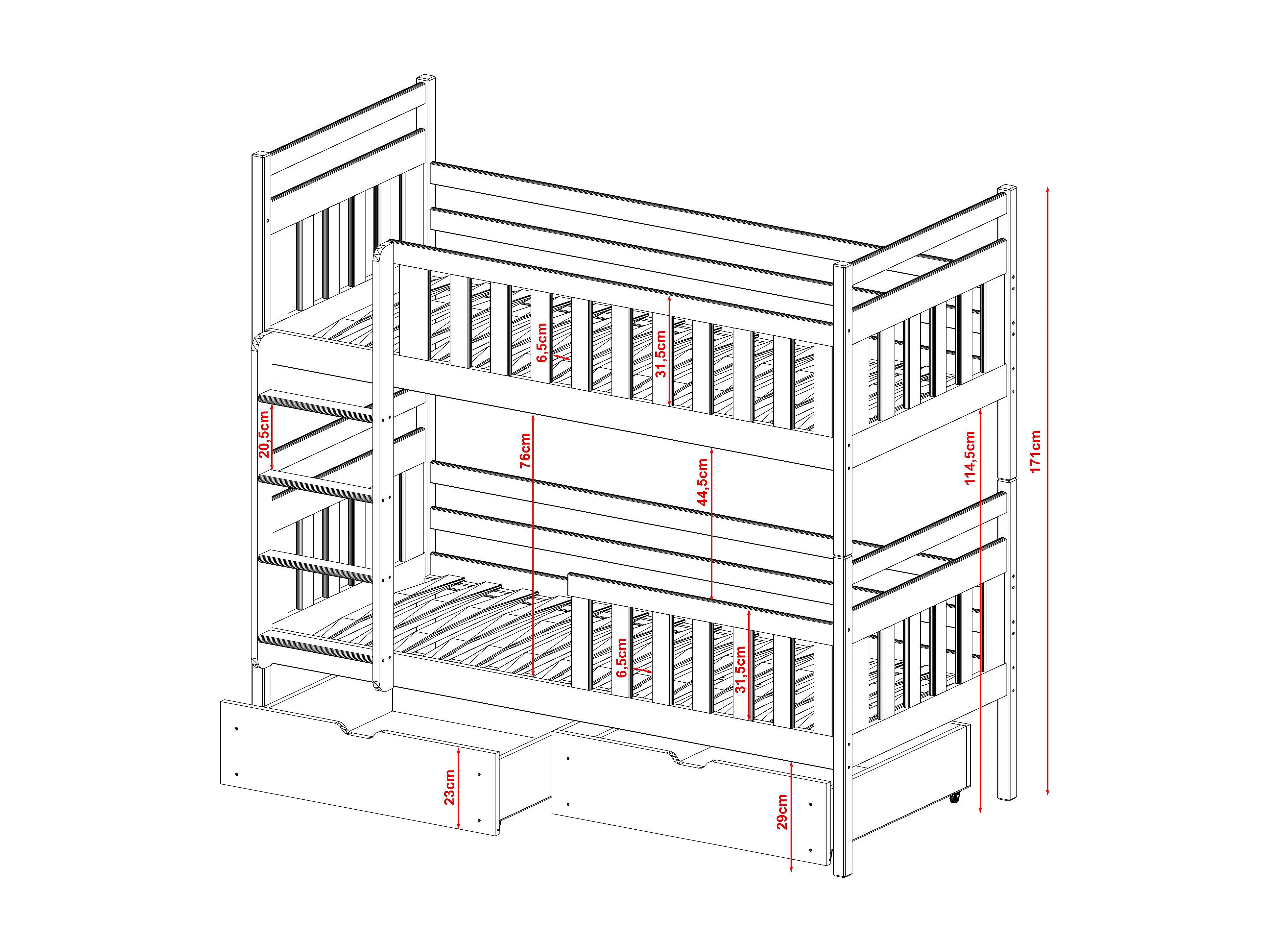 Lits superposés MONIKA BB012 90x180 cm Graphite