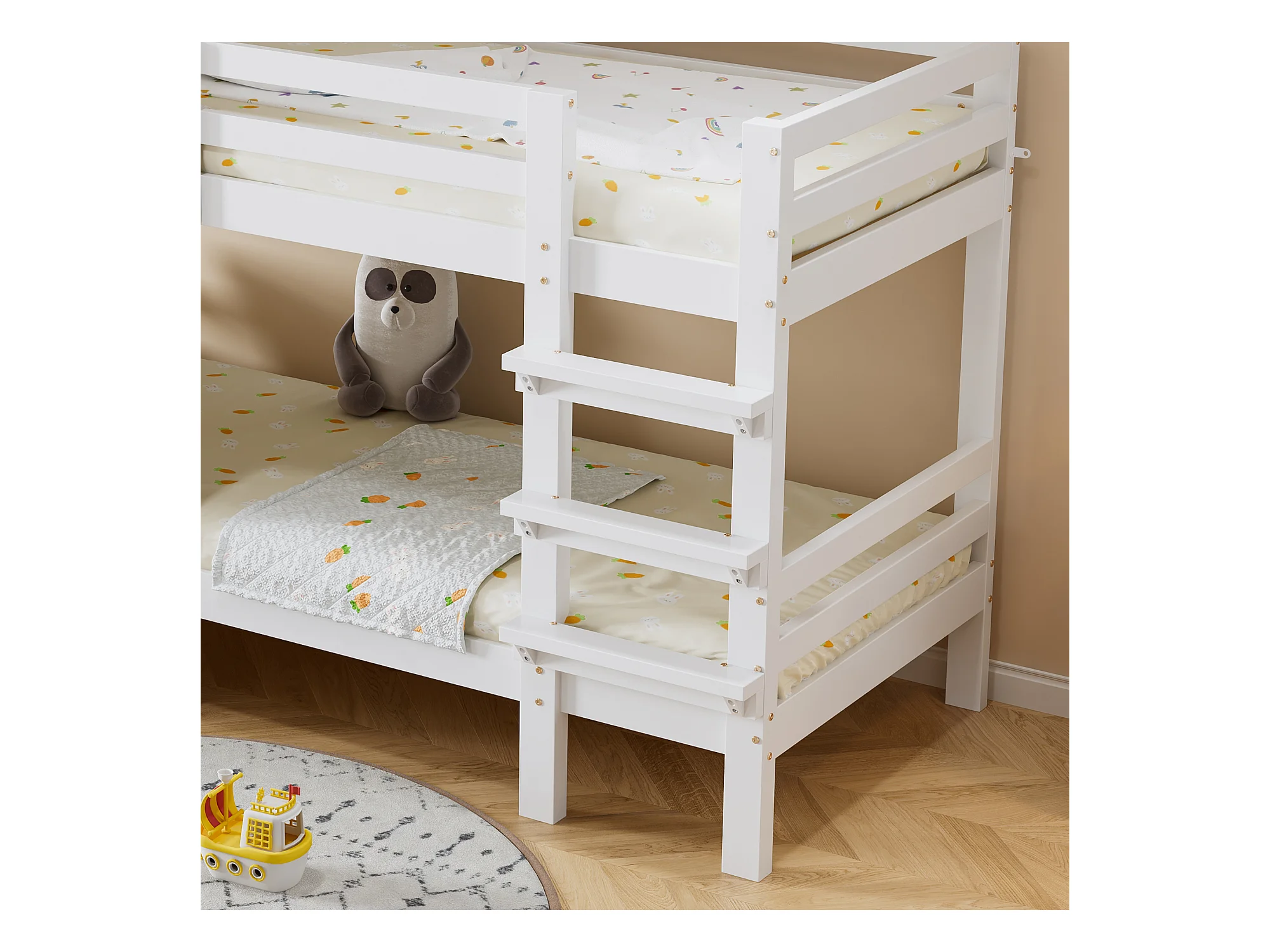 Lit superposé pour enfant 90x200 cm - avec échelle et garde-corps - design simple - Blanc (sans matelas)