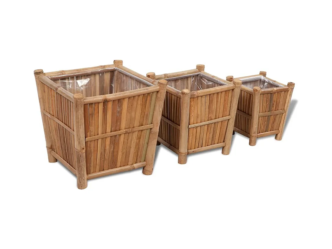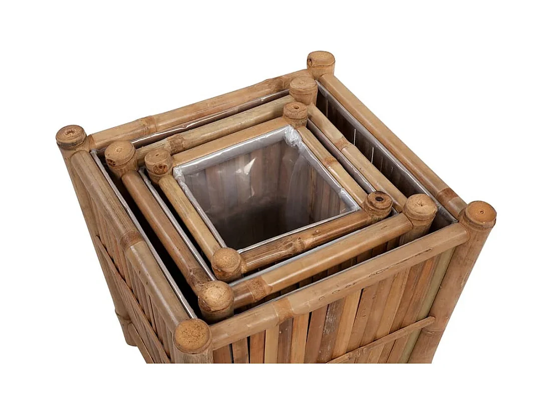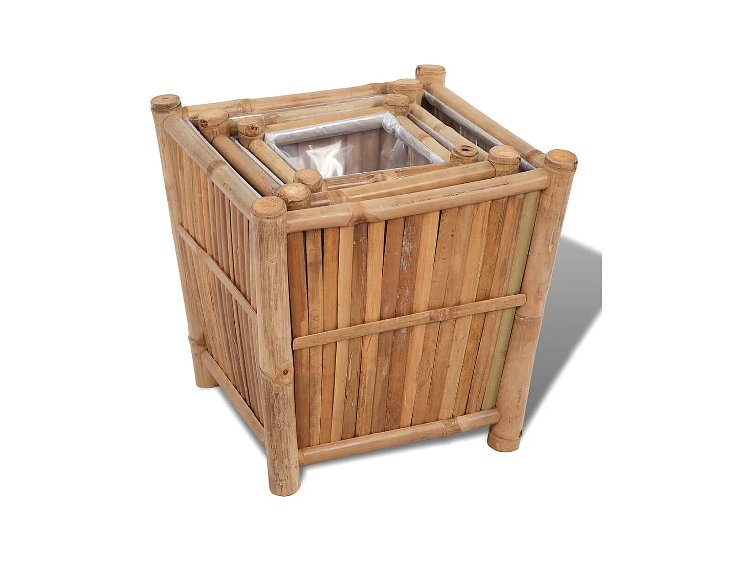 Lits surélevés en bambou avec doublure en nylon 3 pcs