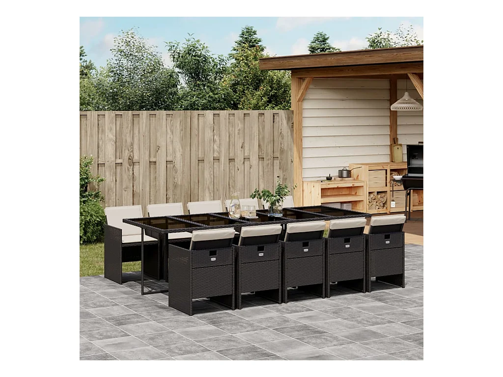 Sharif Ensemble à manger de jardin 11 pcs coussins noir résine tressée