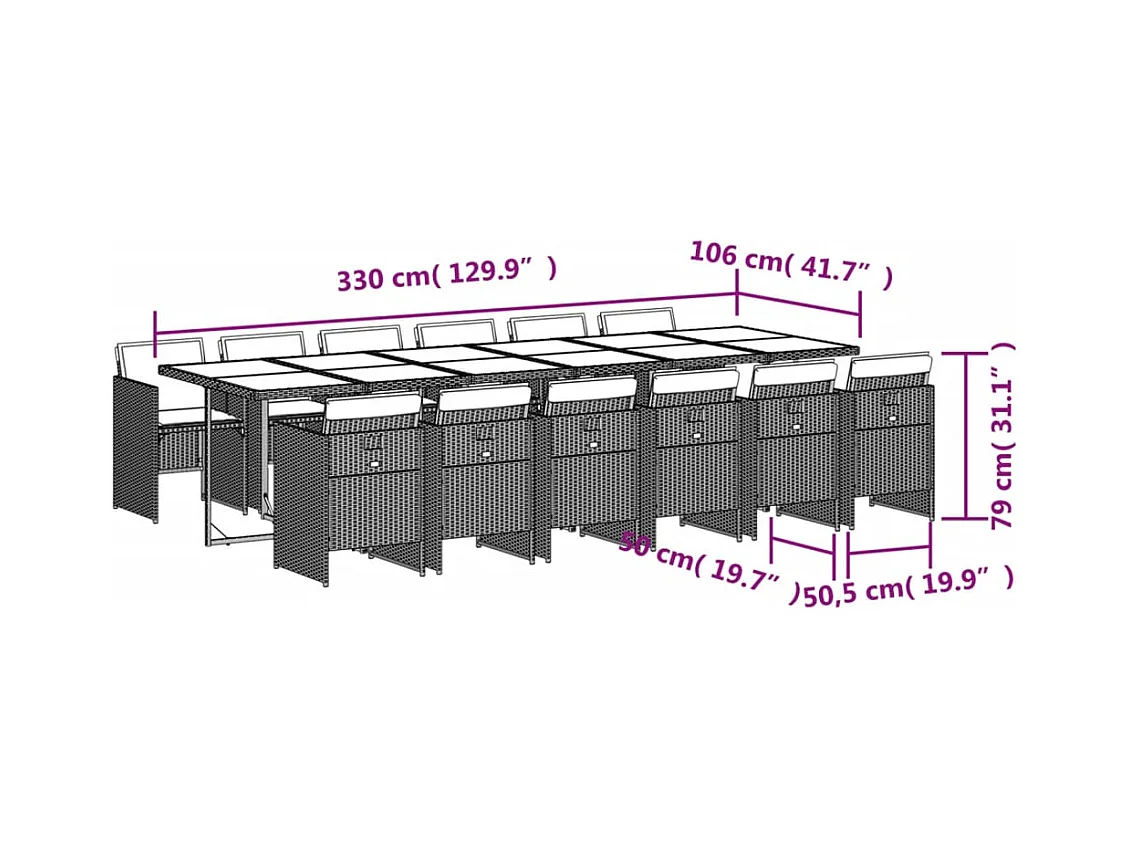 Jeroen Ensemble à manger de jardin 13 pcs coussins noir résine tressée