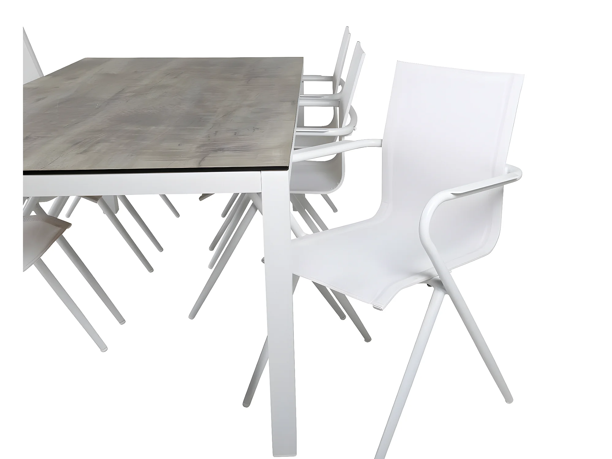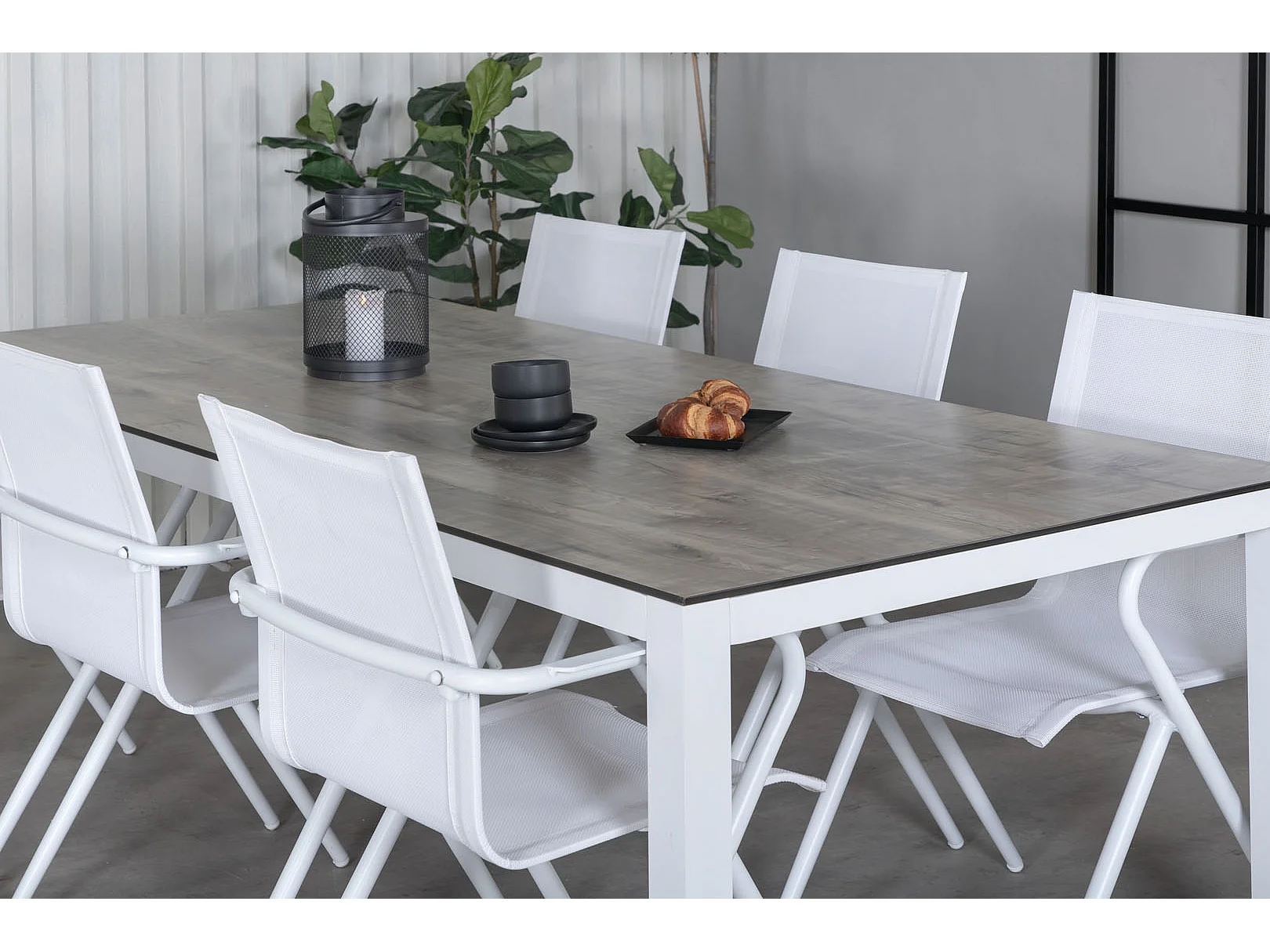 Llama Ensemble table et chaises de jardin, table 100x205cm et 6 chaises Alina, blanc, gris, crème.