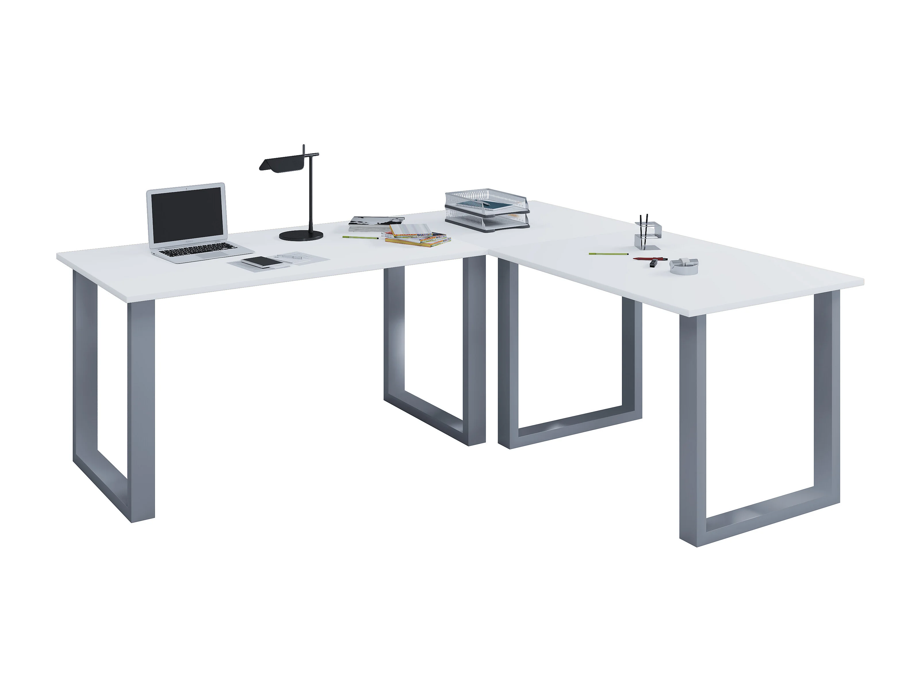 Desk Lona Silver / White H. 76 x W. 220 x D. 190 cm
