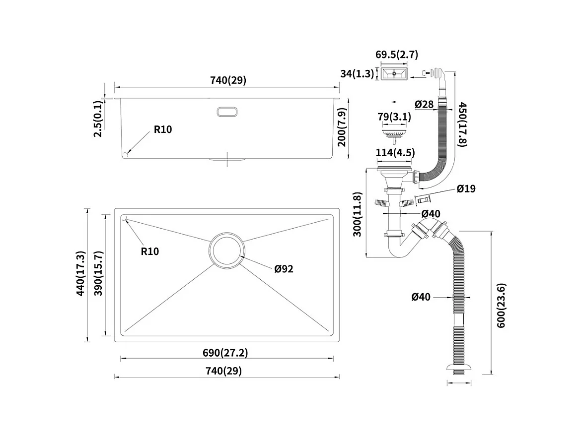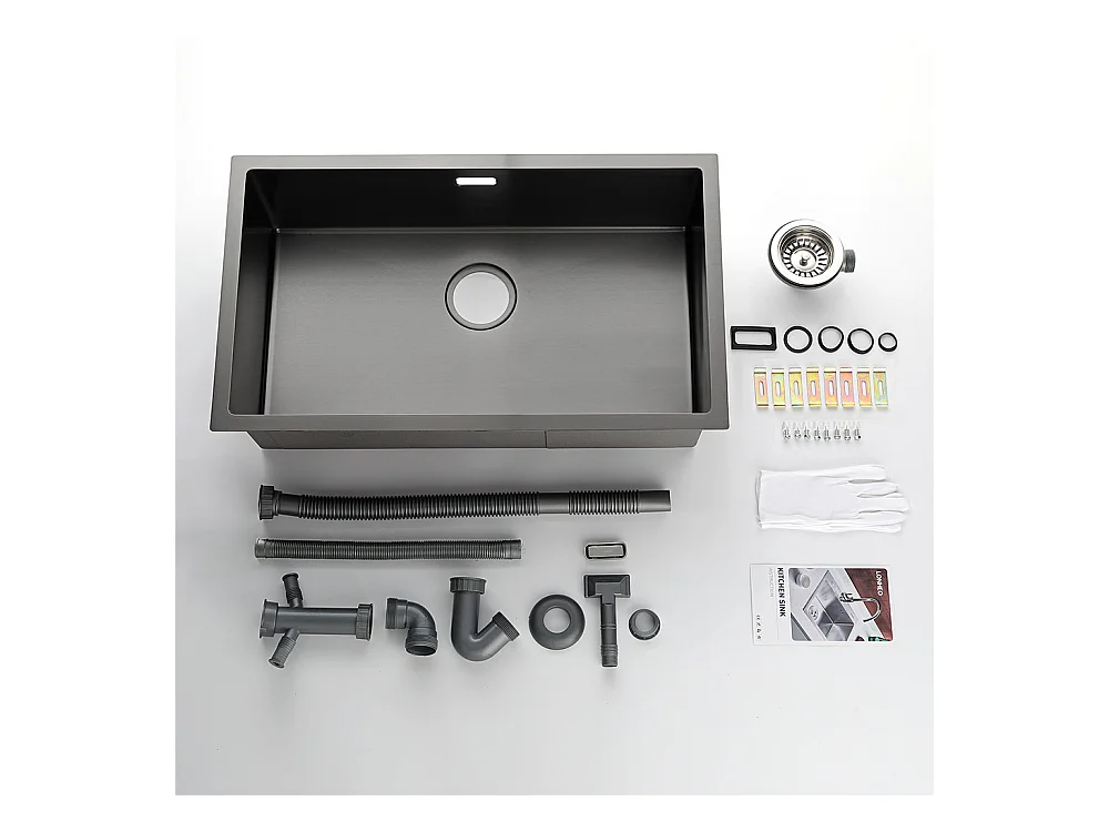 LONHEO MAX Évier Cuisine 1 Bac 74*44*20CM,en Inox Brossé avec Siphon et Trop-Pleinn,Noir
