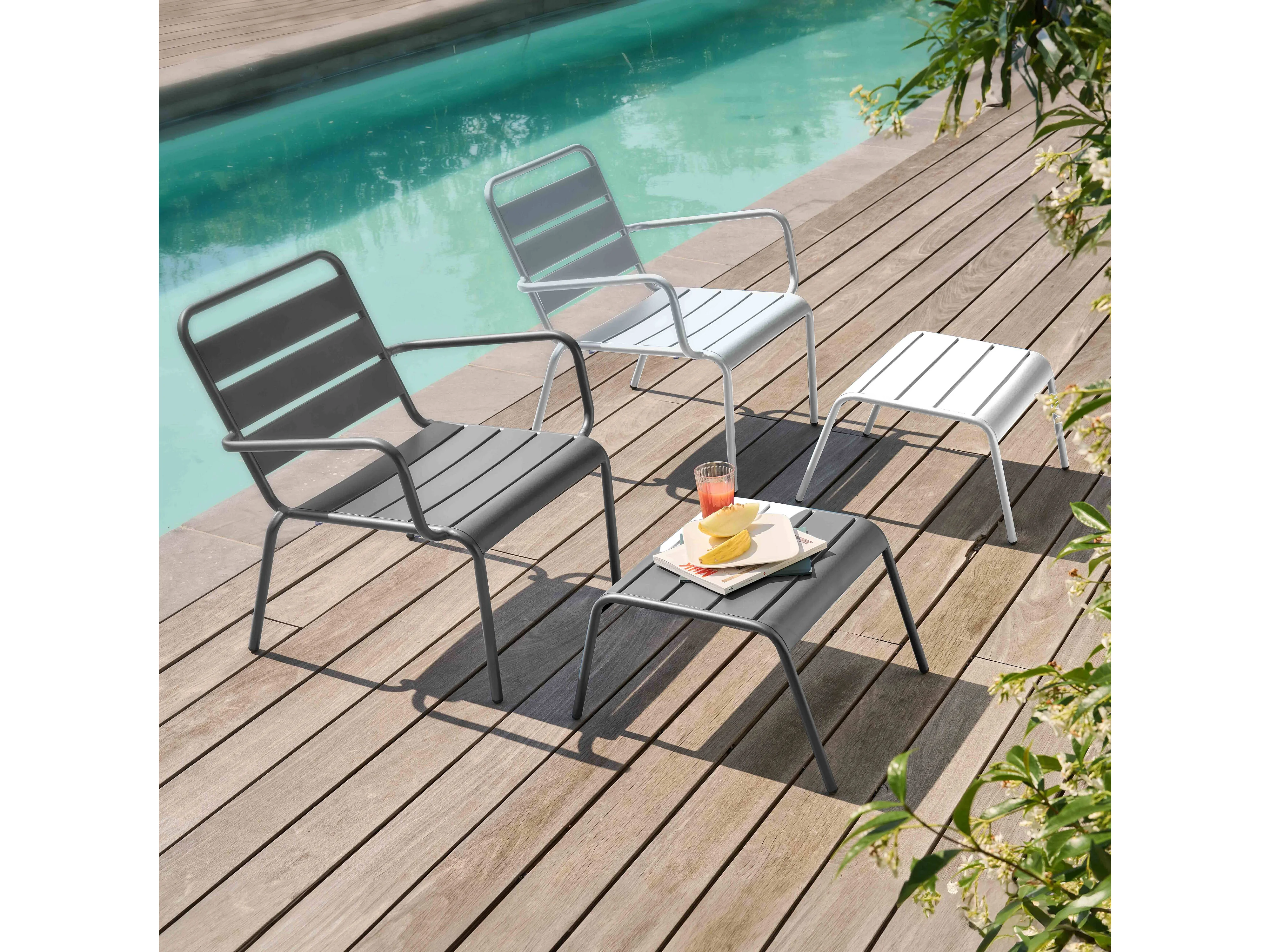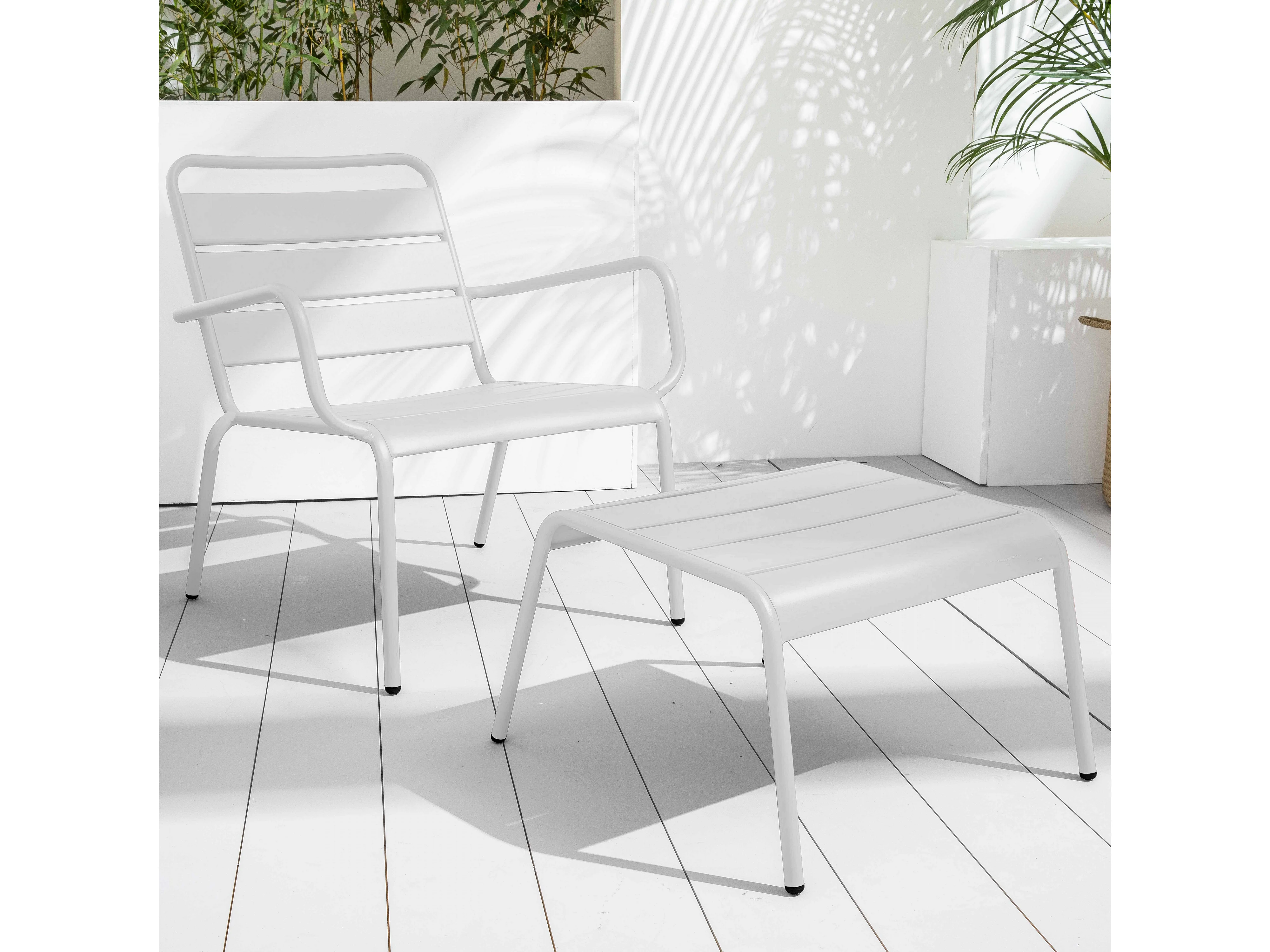 Lot 2 fauteuils relax avec repose-pieds métal gris et blanc - Palavas