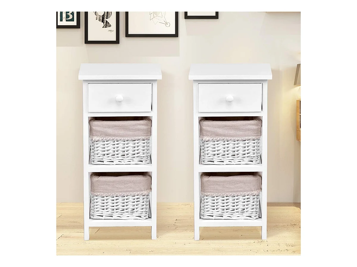 Lot de 2 Tables de chevet Blanc 50x32x60 cm GHR16423
