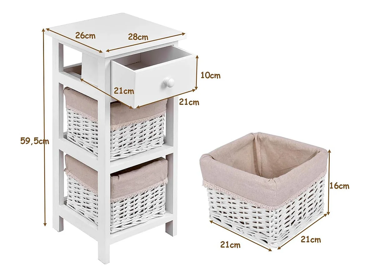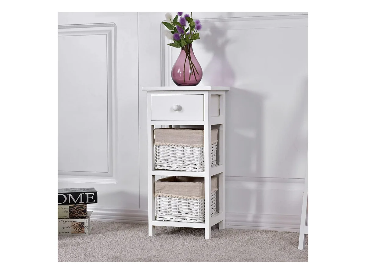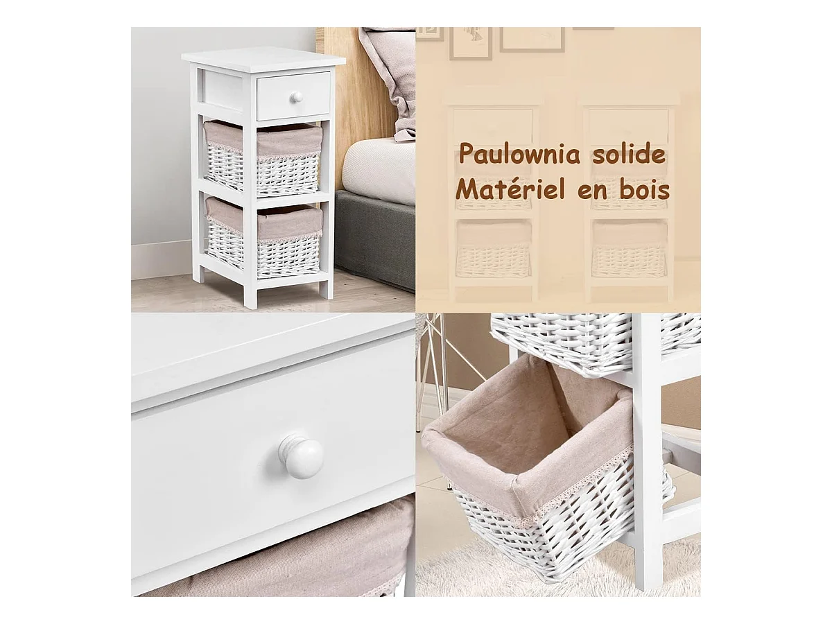 Lot 2 Tables de Chevet avec 1 Tiroir et 2 Panier d'Osier Amovible,Cadre en Bois de Paulownia Style Vintage Rustique