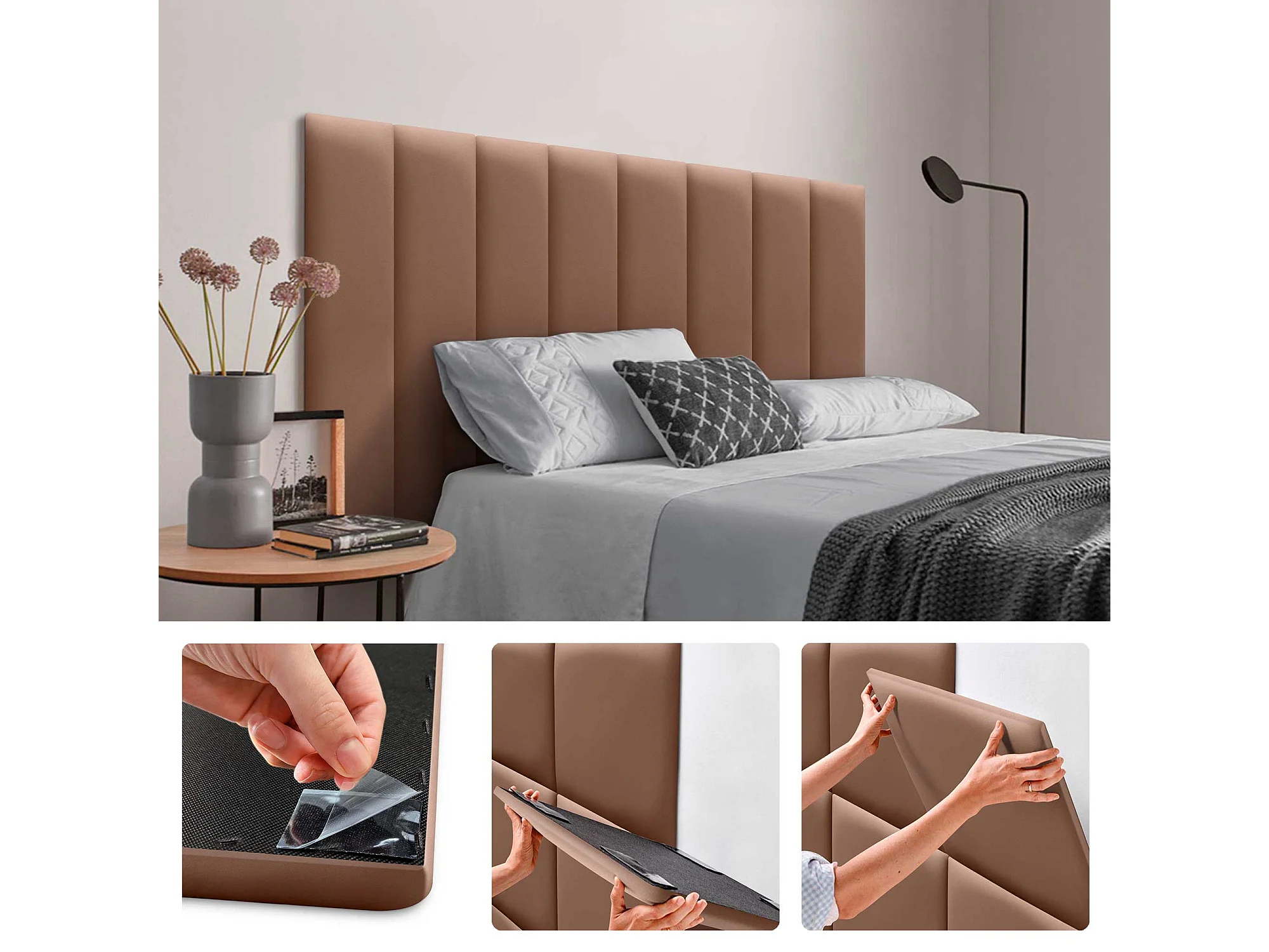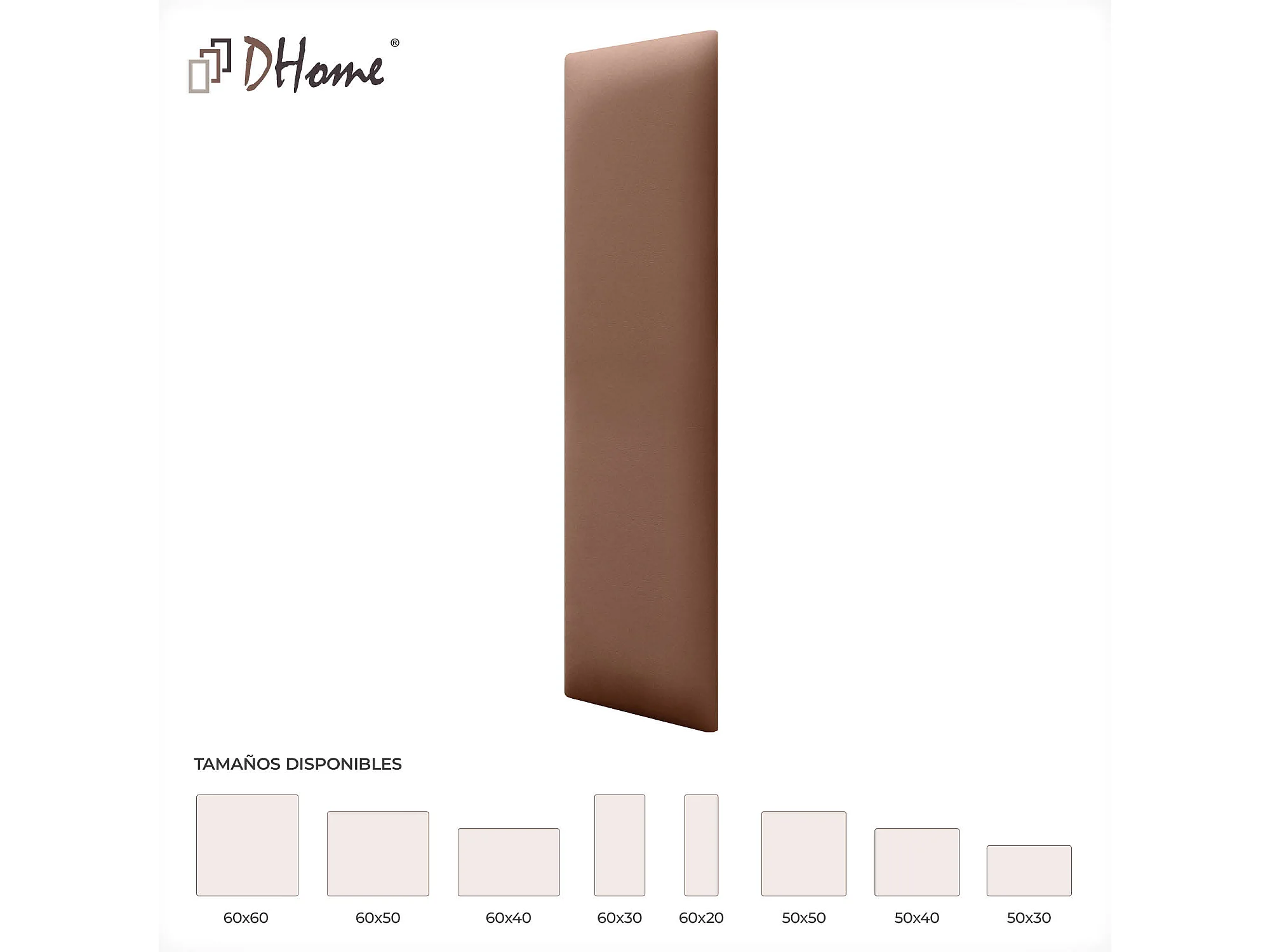 Lot de 1 panneau rembourré en similicuir écologique DHOME autocollant pour protection acoustique murale absorbante (Argile, 60 x 20 cm, x1)