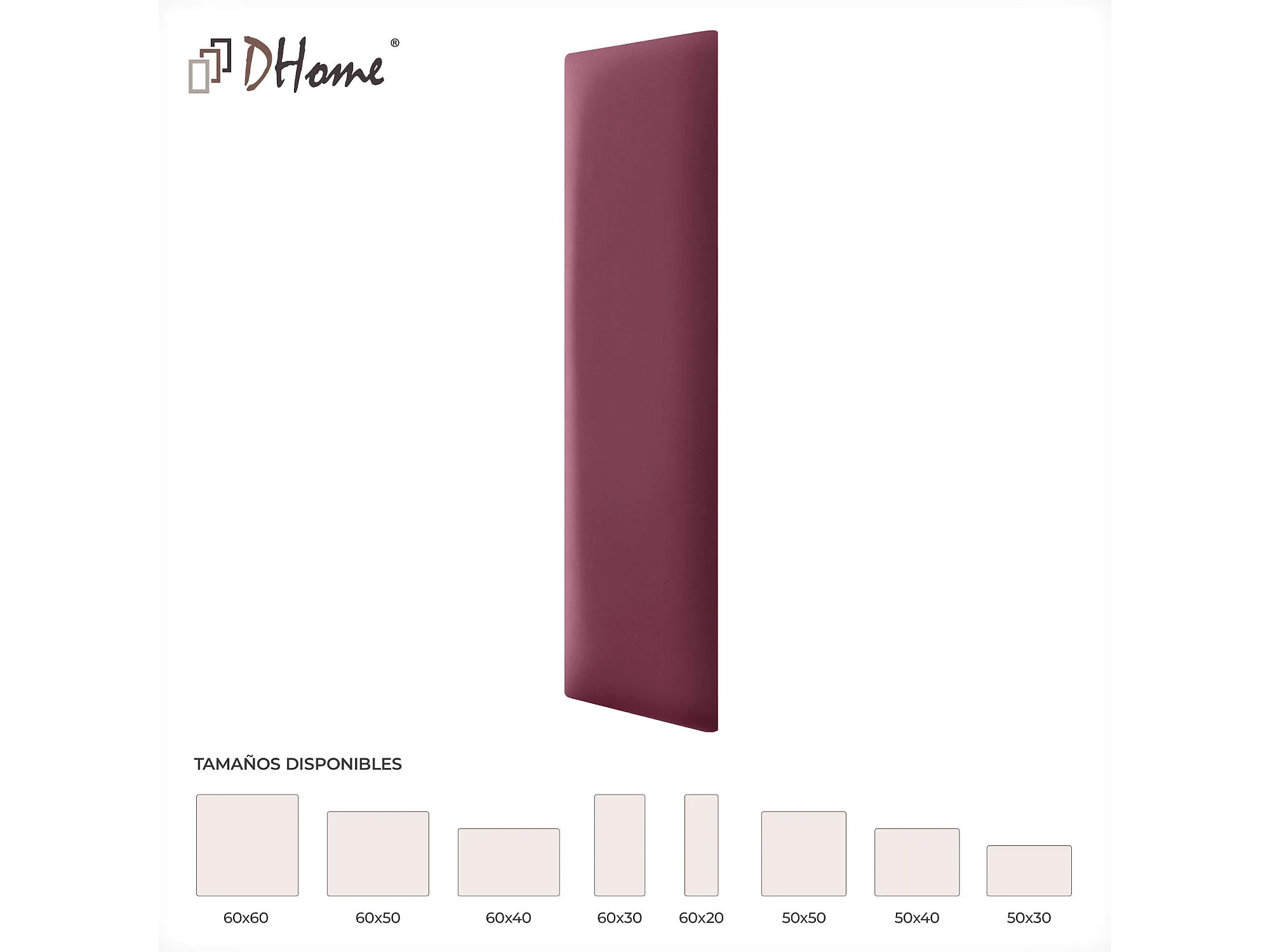 Lot de 1 panneau rembourré en similicuir écologique DHOME, autocollant pour protection acoustique murale absorbante (Rouge vin, 60 x 20 cm, x1)