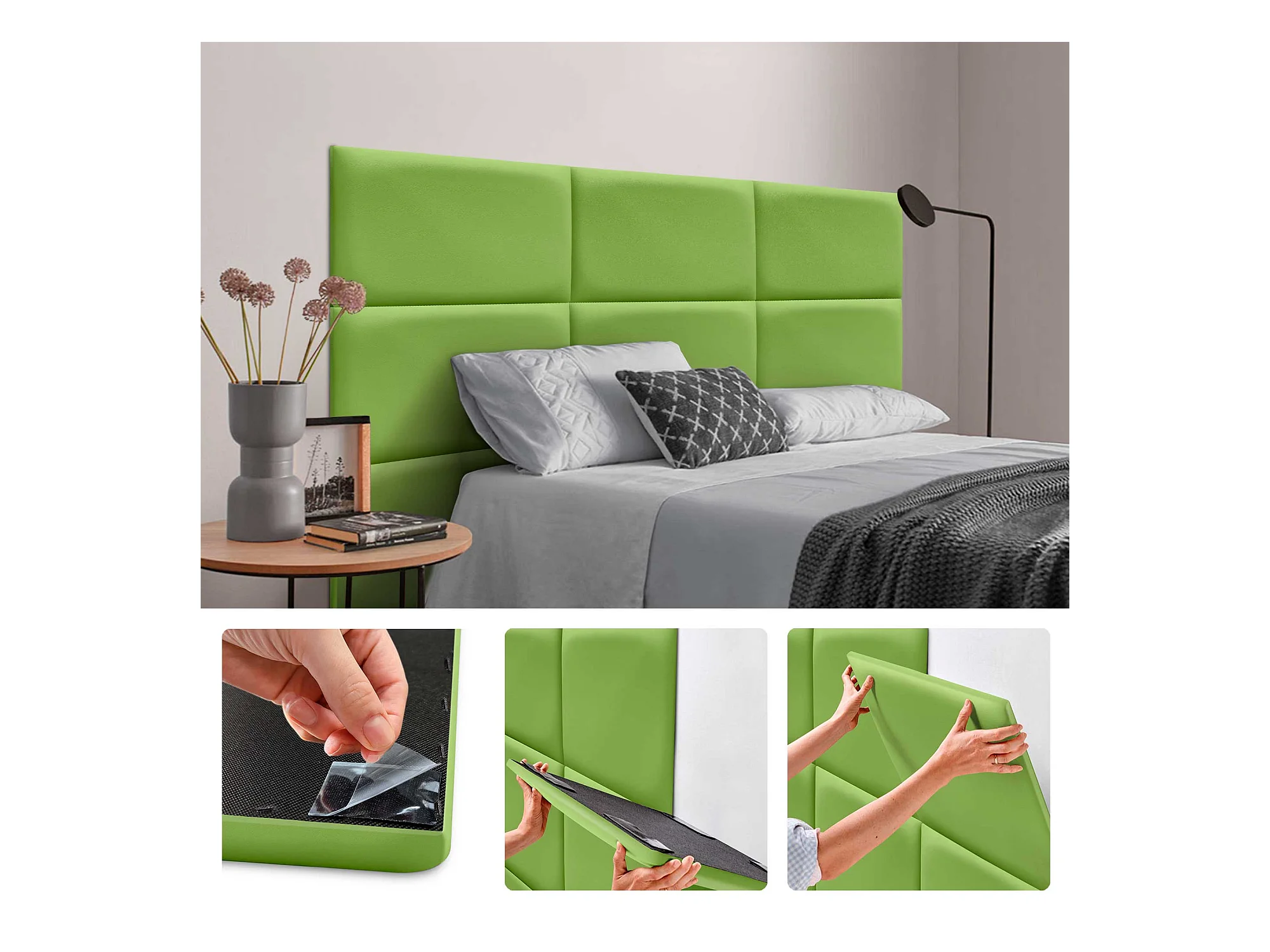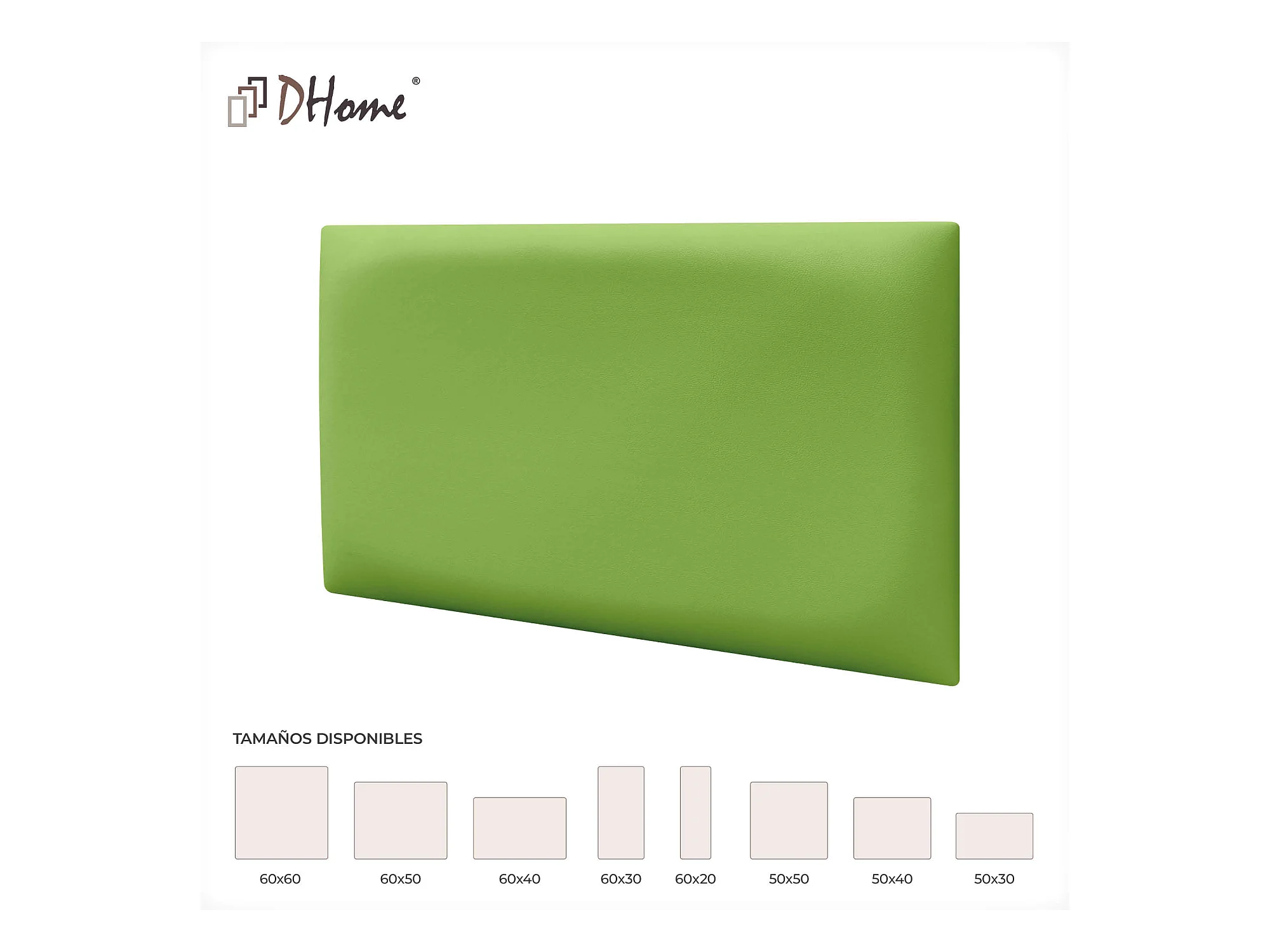 Lot de 1 panneau rembourré en similicuir écologique DHOME autocollant pour protection acoustique murale absorbante (Vert, 60 x 50 cm, x6)