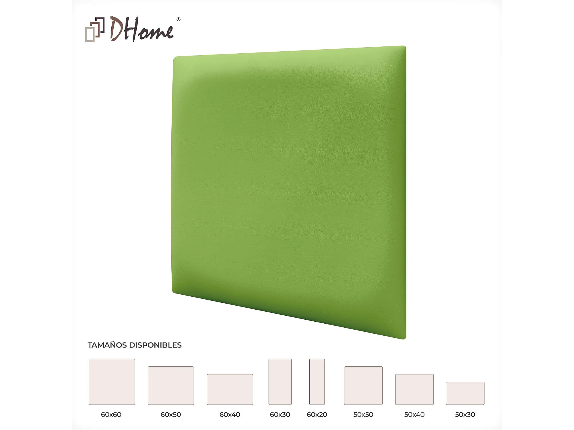 Lot de 1 panneau rembourré en similicuir écologique DHOME, autocollant pour protection acoustique murale absorbante (Vert, 60 x 60 cm, x1)