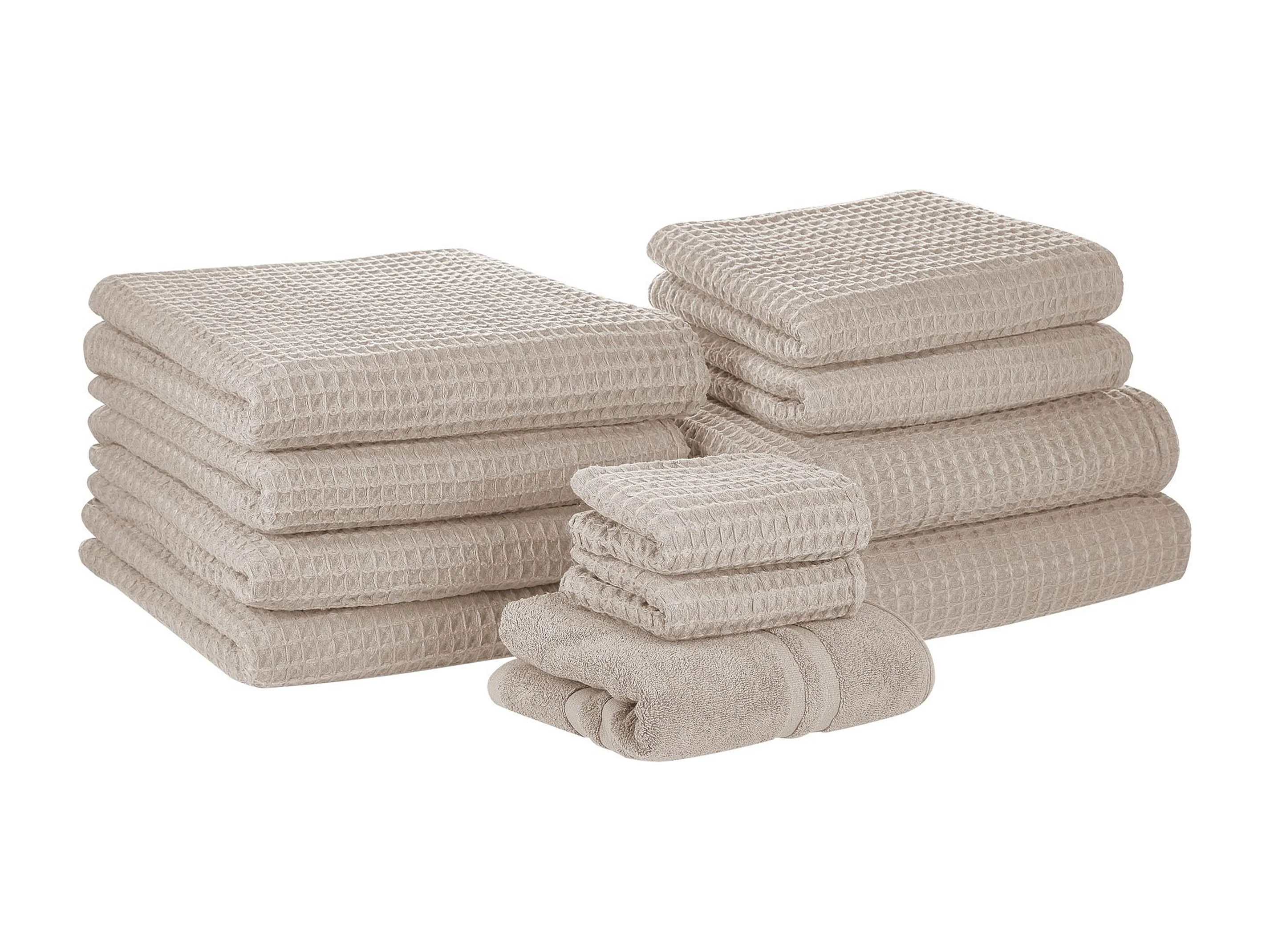 Lot de 9 serviettes MITIARO Tissu éponge Beige sable