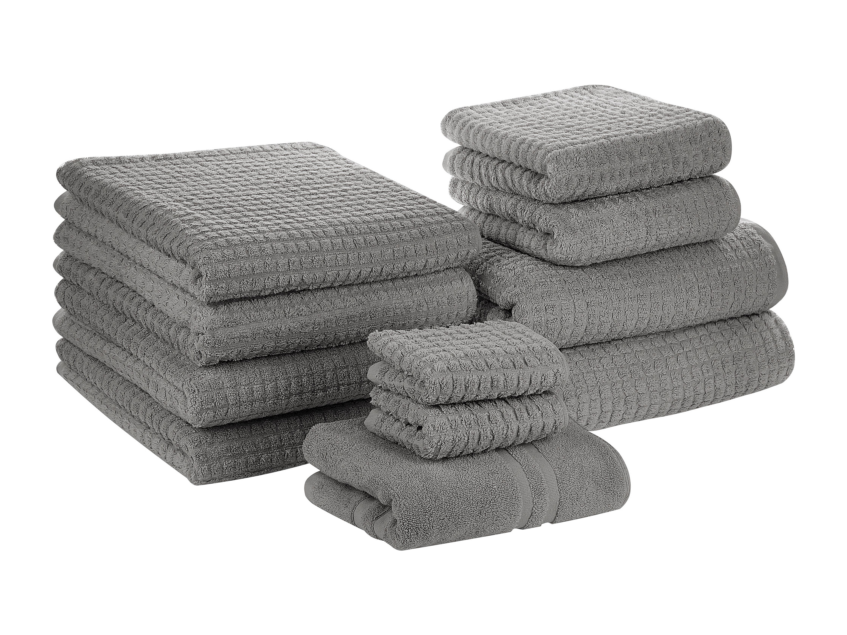 Lot de 9 serviettes MITIARO Tissu éponge Gris