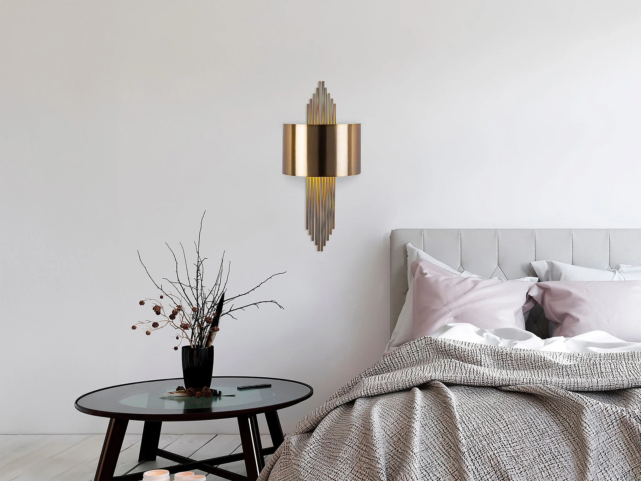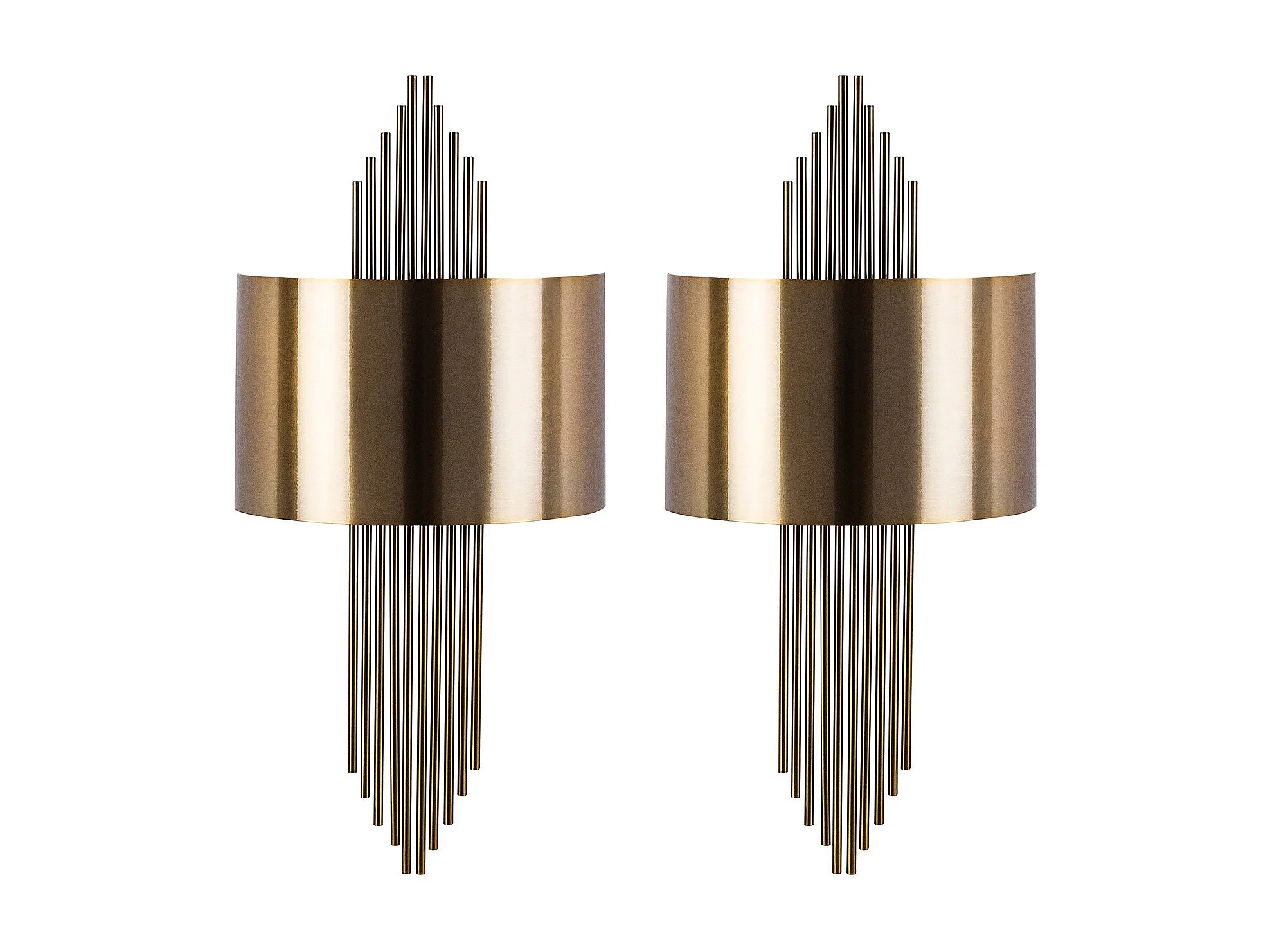 Lot de 2 appliques art déco en métal - L. 22 x H. 75 cm - Doré - SANGARIUS