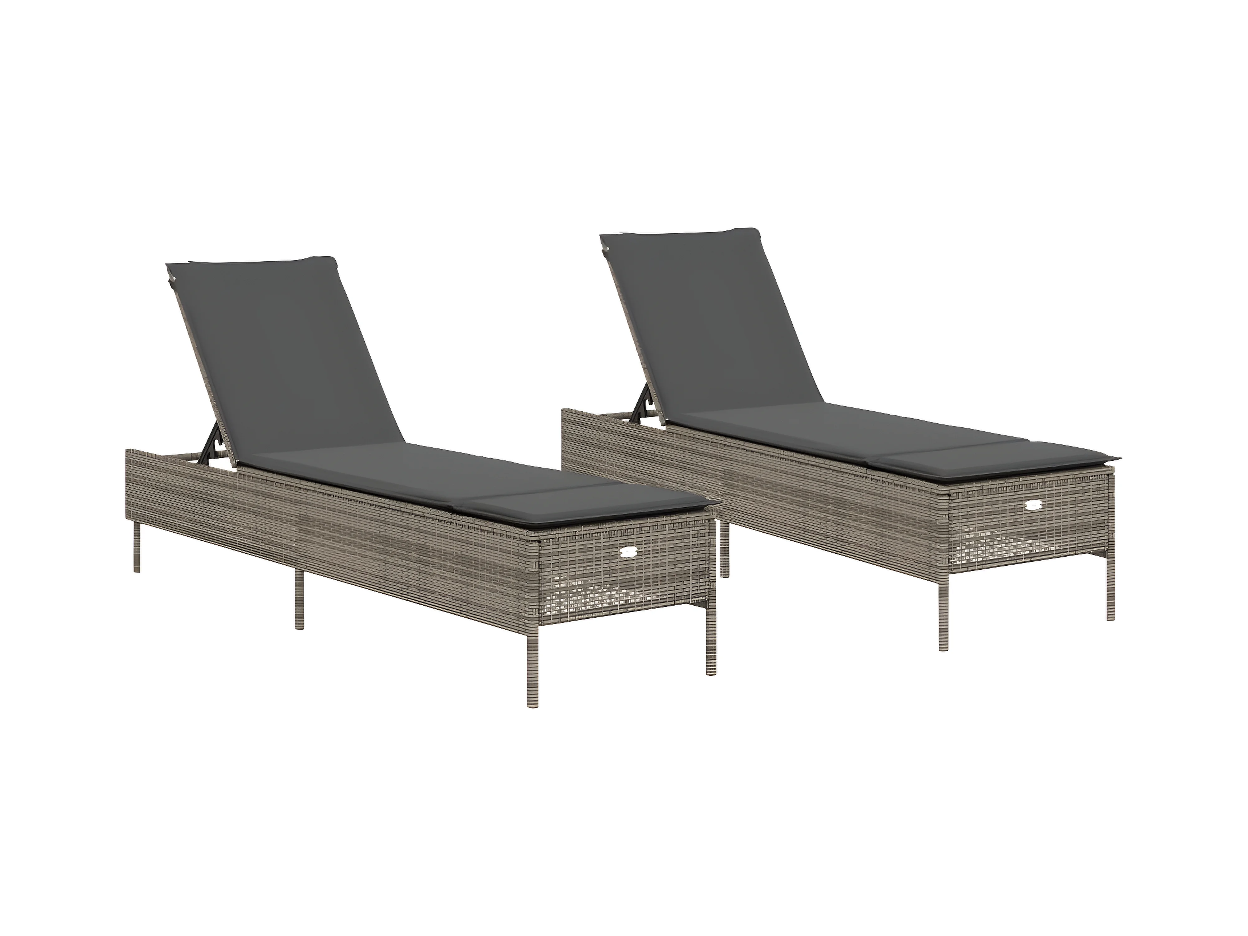 Chaises longues avec coussins lot de 2 gris résine tressée
